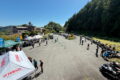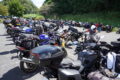 到着した般若の丘には、YAMAHAロゴのノボリと誘導員の方が出迎えてくれる。すでに多くのライダーが到着し、思い思いに語り合ったり、バイクを見せ合ったりしている。ヤマハ車がメインだが、他のブランドもそれなりにいた。