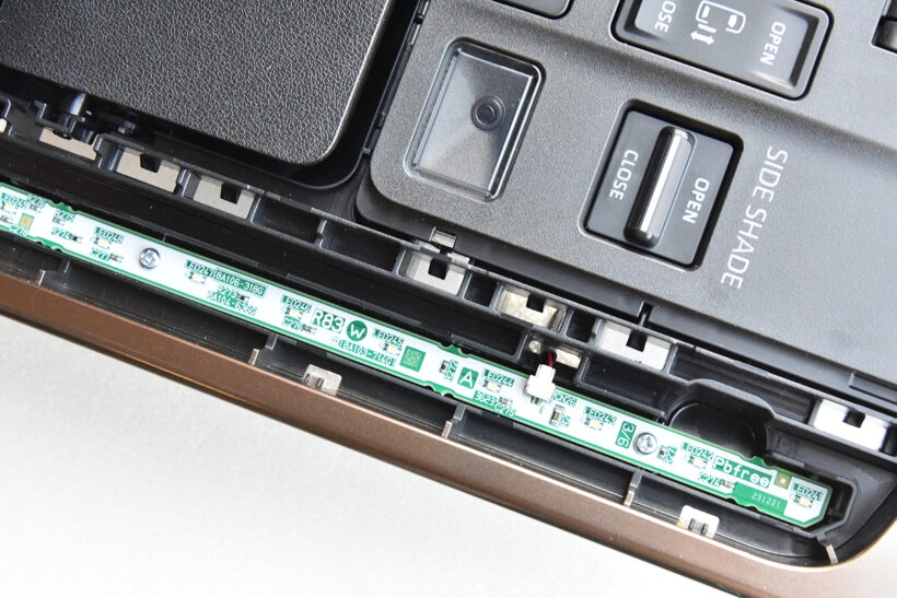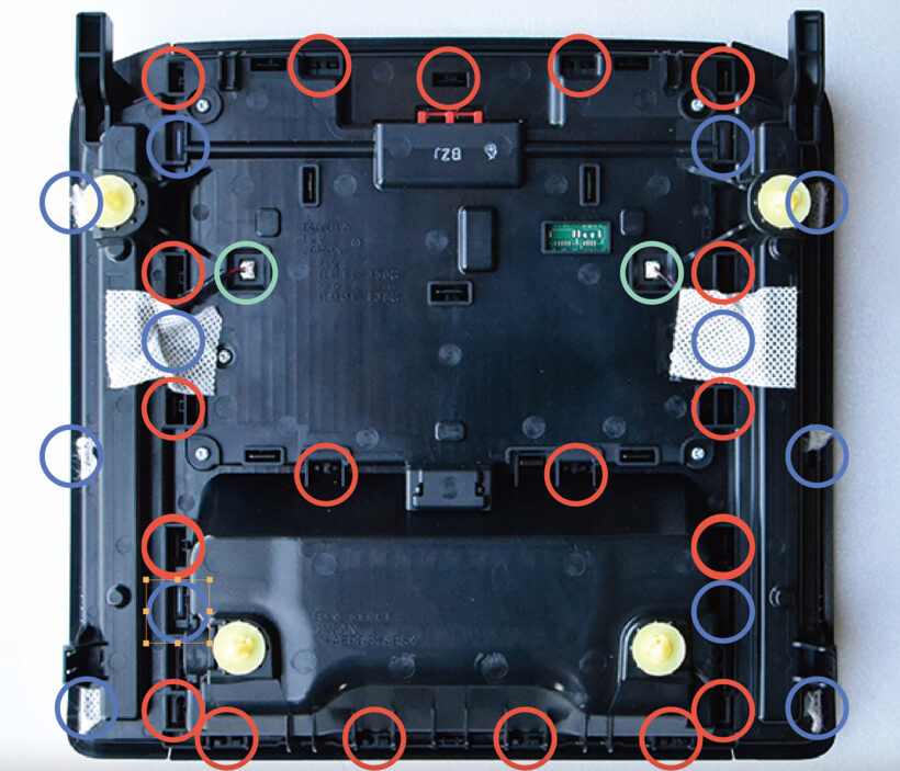 DIY・メンテナンス 4段階の調光機能も! 新型『アルファード』のルームランプをより明るくオシャレにアップデート|ケースペックDIY講座 Vol.5【写真・27枚目】 ランプのフチに、純正ルーフカラーイルミネーションに連動して点灯する照明を搭載したモデル。華やかなイルミネーション機能に加え、ルームランプの明るさは左右独立して4段階で調整が可能と、使い勝手もバッチリだ。 準備する工具 ・内張りはがし ・シールリムーバー ・マイナスドライバー ・養生テープ (手順1)前方の両側から内側にテンションをかけ、マップランプを外し、ランプに接続されているカプラーを抜いて、ユニットを分離させる。 (手順2)ユニット裏側の赤丸の19箇所のツメを解除し、化粧カバーを外す。青丸の12箇所のツメを解除しレンズを外す。緑丸のカプラーを外す。 Silk Blaze SELECT ITEMILLUMINATION LED ROOM LAMP この画像の記事を読む