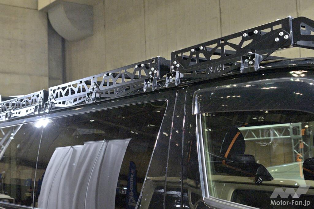 ホットスタッフは、メーカーからパーツを仕入れショップ等へ販売する卸業のほか、オリジナルホイールを開発するメーカー業を生業としている。同社は昨今人気のオフスタイルを応援しており、出展ハイエースもそれを意識したカスタムが複数実践されていた。