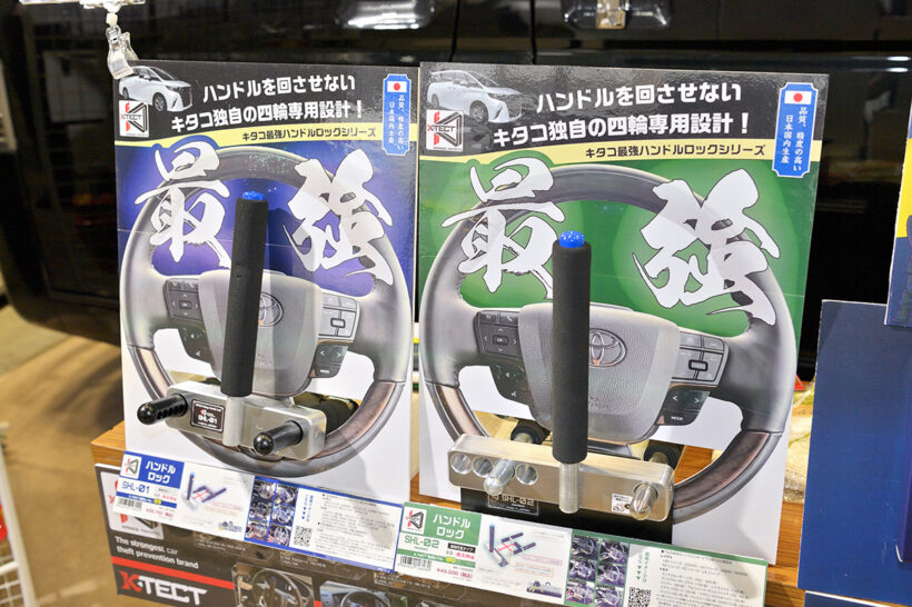 パーツ(カスタム) ジムニーやランクル、ハイエースにも! オフロードスタイルに最適なホイールが集結 【東京アウトドアショー2025探訪⑧】【写真・8枚目】 BARKLEY HARDROCK MAD CROSS RANGER BARKLEY HARDROCK MAD CROSS AEVER MAD CROSS GRACE HOT STUFF CORPORATION/HIACE 前後のスチールバーは、オフカスタムの大定番ジャオス。ホットスタッフでも取り扱っている人気メーカーだ。 手持ちのスマホで簡単に操作ができるセキュリティ「Zガード」。車両盗難防止対策として効果的。 機械を使っても切断できない超硬ジュラルミンを使った、ハンドルを強制的に固定するキタコの防犯ロック。 汎用性の高いカー用品を手掛けるCAP。各種ホルダーや磁石固定のカーテンなどの、便利グッズを提案。 この画像の記事を読む