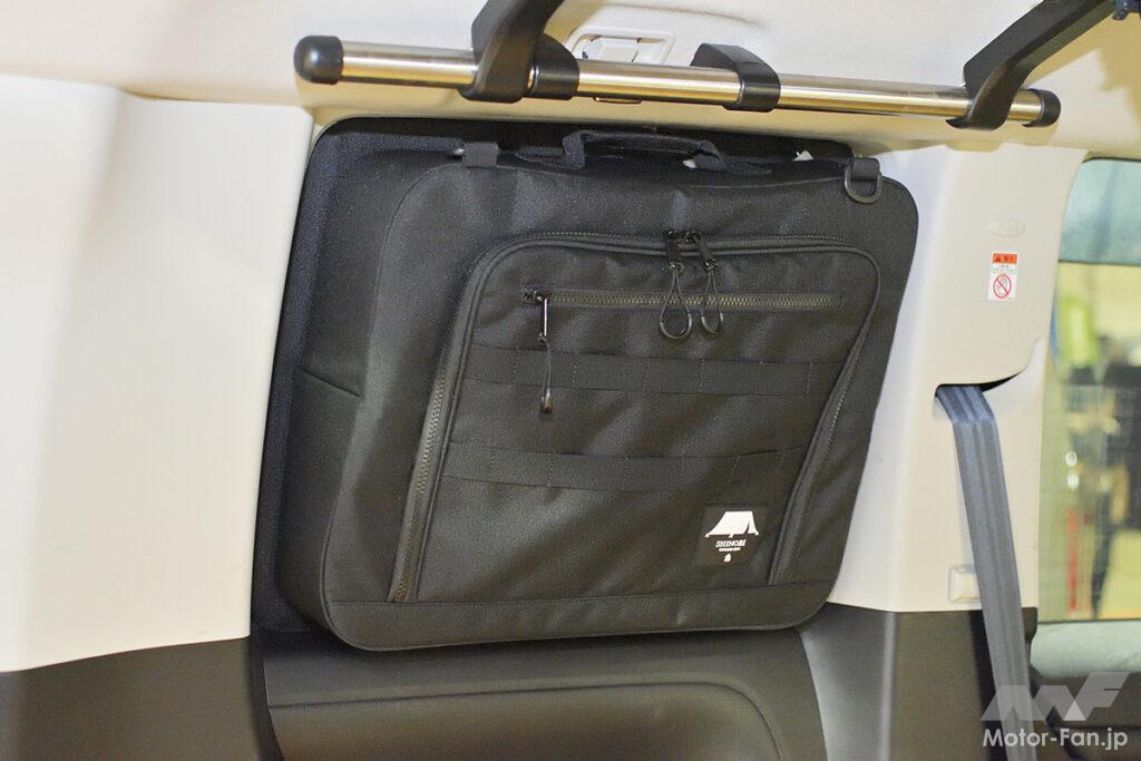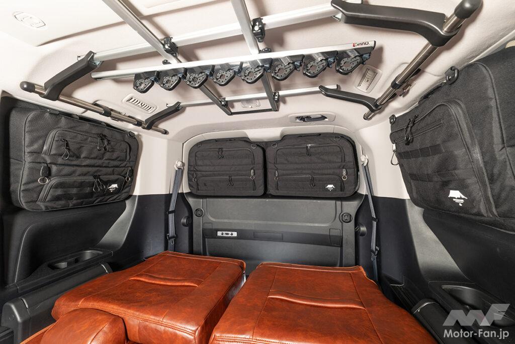 さらに見過ごせないのが、「プラス空間」と呼ぶ収納。サイドやリアウインドウに吸盤で追加するパーツで、車中泊時のプライベート空間を保てるブラインド効果もあり!! ちなみにパーツによってはデリカD5以外の対応も。まずは愛車の設定があるか確認あれ。