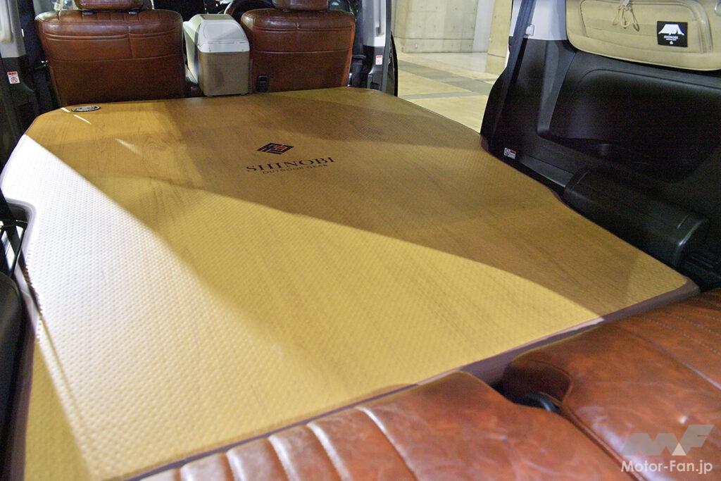 デリカオーナーの間で話題となっている「シノビ アウトドアギア」は、アウトドアカーライフに特化したブランド。車中泊を快適なものにするルーフテントのほか、展開もカンタンなエアマットなど、あると便利なパーツを複数展開している。
