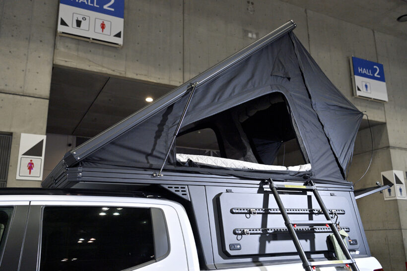 車中泊 家みたい! 「居住性と収納」に優れたトライトン専用「ピークネストキャノピー」が機能的すぎ【東京アウトドアショー2025探訪⑩】【写真・5枚目】 BLACK BEAR TRITON 荷室上空を活用できる「ピークネストキャノピー」。キャノピーはアルミ合金製で天井が開くため、内部からテントへ出入りできる。 ゴツいアイアンバンパーは、パイプ部のみを取り外すことも可能。ウインチも追加できる。 フロントバンパー側面にあるクマのロゴも必見。プレスではなく、なんとスチールのくり抜きだ!! サイドステップはラダーフレームへの直付け構造。一般的商品よりも強度が高いという。 インテリアパネルは、姉妹ブランド「ランボ」の商品。ライトとダークの2色のブラウンがから選択できる。SPECIFICATIONS ■エクステリア:フロントアイアンバンパー/33万4540円、サイドステップ/13万4860円、リアアイアンバンパー/20万7240円、ピークネストキャノピー/85万8550円 ■LAMBOインテリアパネル/2420円〜1万780円 ■ホイール:スーパースター・レオンハルト サフォークXC/運転席側、オークスXC/助手席側(20×9.0J+21) ■タイヤ:モンスタタイヤ・テレーングリッパー(285/55 R20) デモカーは左右で異なるモデルを履いており、ともにカスタムオーダーもできる3ピース。写真はサフォーク。 この画像の記事を読む