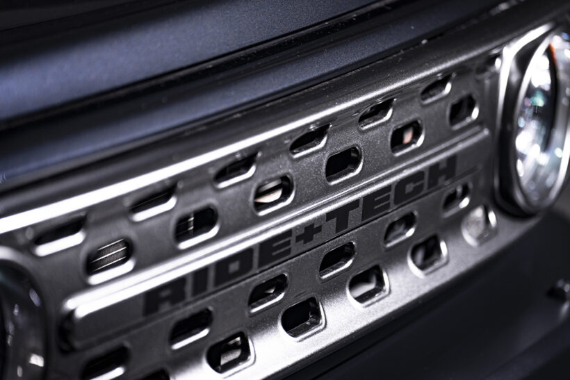 エアロパーツ 都会の街並みにも映える! ライドテックの新『ジムニーノマド』の提案はエレガントオフローダー【写真・3枚目】 フロントバンパー&フェイスグリルは高い精度を誇るABS製。ゆえにフィッティングに優れているため、新車で購入したノマドユーザーもクオリティの高さに納得するだろう。 RIDE TECH JC74 JIMNY NOMADE RIDE TECH JC74 JIMNY NOMADE RIDE TECH フロントバンパー&フェイスグリルは高い精度を誇るABS製。ゆえにフィッティングに優れているため、新車で購入したノマドユーザーもクオリティの高さに納得するだろう。 ヘッドライトのまわりにもフチを付けているため、丸型のヘッドライトを強調。ウインカーの奥行きも見て欲しいポイント。 シュタルクのウリである楕円型ホール。ただ穴を開けただけではなく、しっかりフチを付けているから立体感に満ちている。 豊富なラインアップを誇るライドテックのフロントグリルに、ニューモデルが仲間入り。センターに縦基調のホールを7個インストールしたデザインは、たくましいオフロード車を連想させるワイルドな雰囲気で魅せる。もちろんショート化した同社のフロントバンパーとのマッチングもバッチリ。ノマドをもっとアグレッシブなオフロードスタイルに仕上げたいユーザーにオススメしたい逸品。近日発売、価格未定。 グリルの上部にはつまんだようなフチを付け、さり気なく立体感を追求しているのも見逃せない。ボディカラーやホイールの色などに合わせてペイントするなど、統一感を追求したカスタマイズも楽しんでみよう。 7個のホールはしっかりとフチを付けているため、のっぺりしたような感じがなく、質感の高さも十分味わうことができる。 ヘッドライトの一部を隠すようにデザインされているのもポイントで、目つきを少々変えることでイカツい雰囲気を醸し出す。 この画像の記事を読む