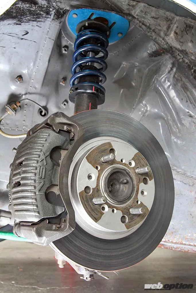 足回りはアラゴスタ製ワンオフ車高調に、ハイパコスプリング(前後12kg/mm)を装着。まだセッティング中とのことで、これからバネレートやアライメントが煮詰められる。また、ブレーキはフロントEG/EKシビック用ローターにNA1キャリパー、リヤはMR-S用ローター&キャリパーで強化される。