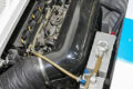 ミッションにはZZT231用6速MTが組み合わされる。デフサイズの大型化に伴いドライブシャフトにはZZW30用を流用しているが、エンジン(とミッション)の搭載位置が下がることでドライブシャフトが上向きになってしまう。それを緩和するため、エンジンは前に傾けて搭載される。インダクションボックスの後ろに確認できるタンクは、ドライサンプ用のエンジンオイルタンクだ。