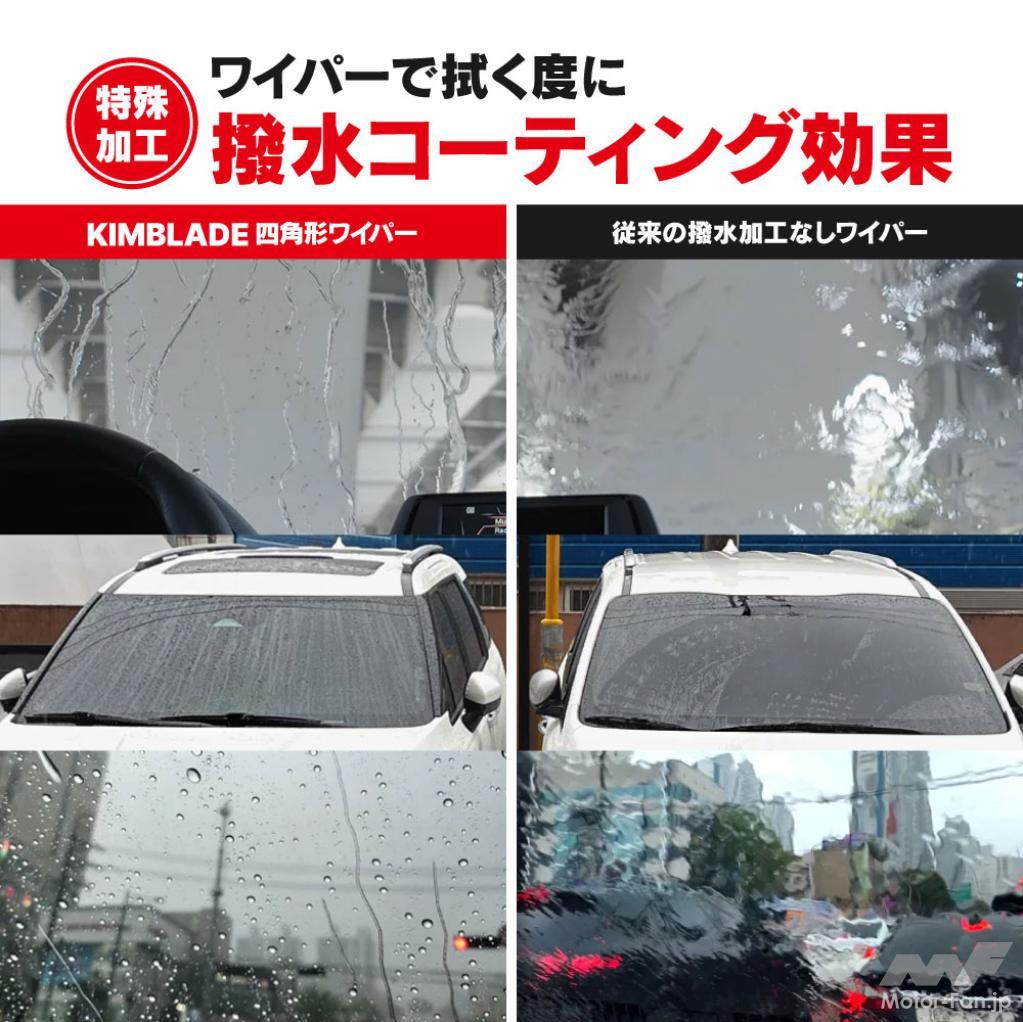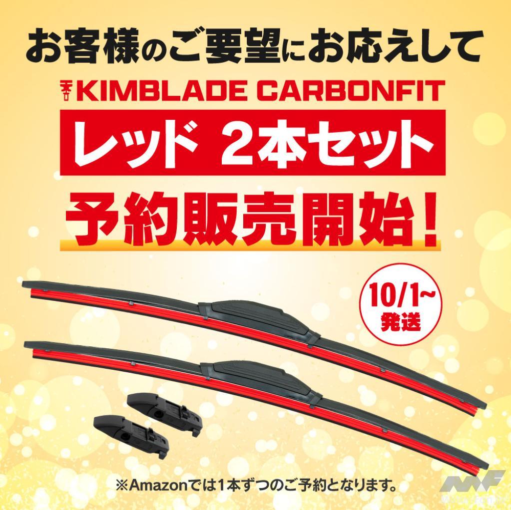 今回予約販売が開始されるのは、革新的な四角形ワイパー「KIMBLADEカーボンフィット」にレッドのワイパーゴムが最初から付いている商品。通常の「KIMBLADEカーボンフィット」のワイパーゴムはブラックだが、本商品はレッドの替えゴムを購入したり交換する必要がなく、すぐにレッドのワイパーゴムにしたいユーザーにはピッタリの商品となっている。