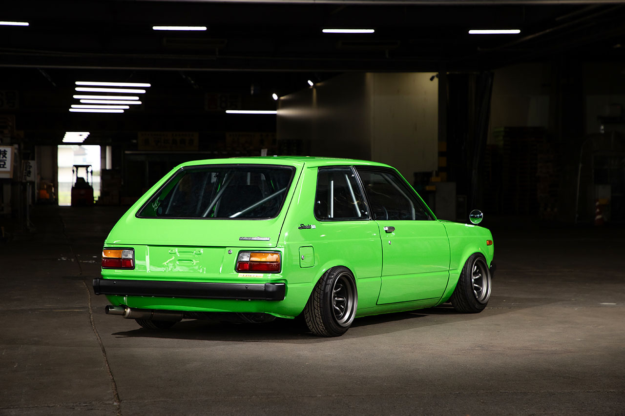 今回取材したのは、YouTubeの企画用に製作されたKP61スターレット。発売は1978年だが、最初のマイナーチェンジが施された中期型が80年、後期型が81年で、51マシーンズのKP61は中期型をベースに前期型ルックへとコンバートした仕様だ。