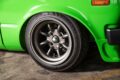 ホイールはRSワタナベのエイトスポークを装着。フロント8J×13、リヤ8.5J×13の極太サイズに、155/60R13のアドバンネオバAD07を引っ張って組み合わせた。サスペンションはガレージ・インフィニティーのAE86用オリジナル車高調、ブレーキはAE86純正の前後ディスクを装備。