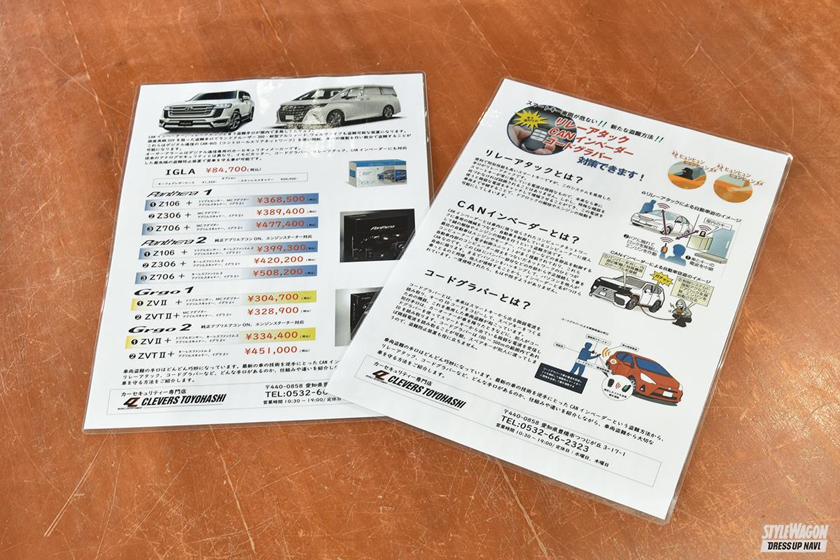 というのも、クレヴァーズは愛知県を拠点とするグループ店の一つで、最新手口や対策といった情報をグループ全体で共有。豊富なノウハウで自分に見合ったプランを提案してくれるのだ。また、クレヴァーズでは40アルファードのデモカーも用意。来店すれば実際にセキュリティ動作の様子などを実体験できることも見逃せないポイントだ。