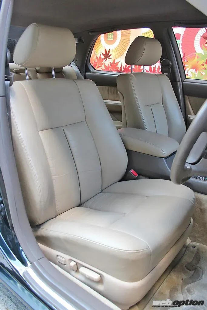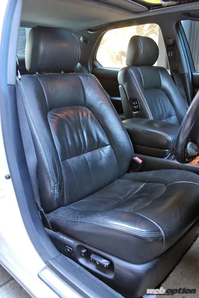 運転席、助手席ともに10ウェイパワーシートを備えるUCF11。シートには新開発のパッドが採用され、コイルスプリング特性やクッション部の座面形状、振動吸収性なども徹底的に解析された。シート表皮はウールファブリックが標準だけど、オプションの本革仕様とされている。