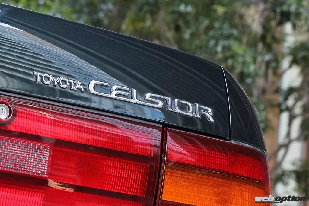 トランクリッド右側に装着された車名エンブレム。UCF10系前期型は車名の左側に小さく“TOYOTA”のエンブレムも付くのが特徴。これが後期型で車名エンブレムだけとなり、UCF20以降もそれを踏襲することになる。
