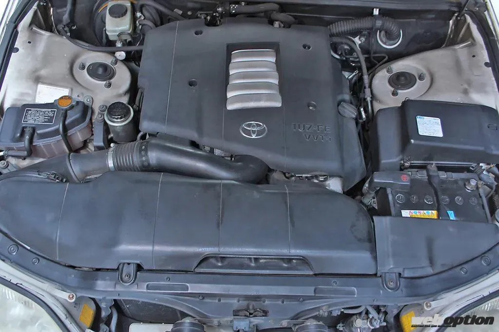 一方のUCF20は後期型のため圧縮比を高めた(10.0→10.5:1)VVT-i仕様を搭載。前期型に比べて最高出力で15ps、最大トルクで4.0kgmアップとなる280ps/41.0kgmを発揮する。ただ、全体が樹脂製カバーで覆われたエンジンルームの眺めはなんとも味気ない。