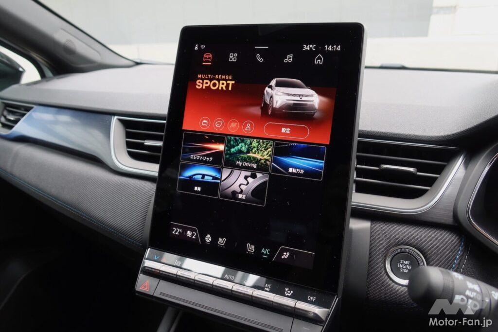 フルハイブリッドE-TECH、MHEVの順に乗った(どちらもエスプリ・アルピーヌ)。フルハイブリッドE-TECHのシステム構成に変更はない。詳細は明らかにされていないが、制御の最適化は行なわれているようで、WLTCモード燃費は従来の22.8km/Lから23.3km/Lに向上している。先に試乗時の燃費をお伝えしておくと、377.1km走って21.6km/Lだった。相変わらず、気持ち良く走って燃費がいいクルマ、の印象だ。
