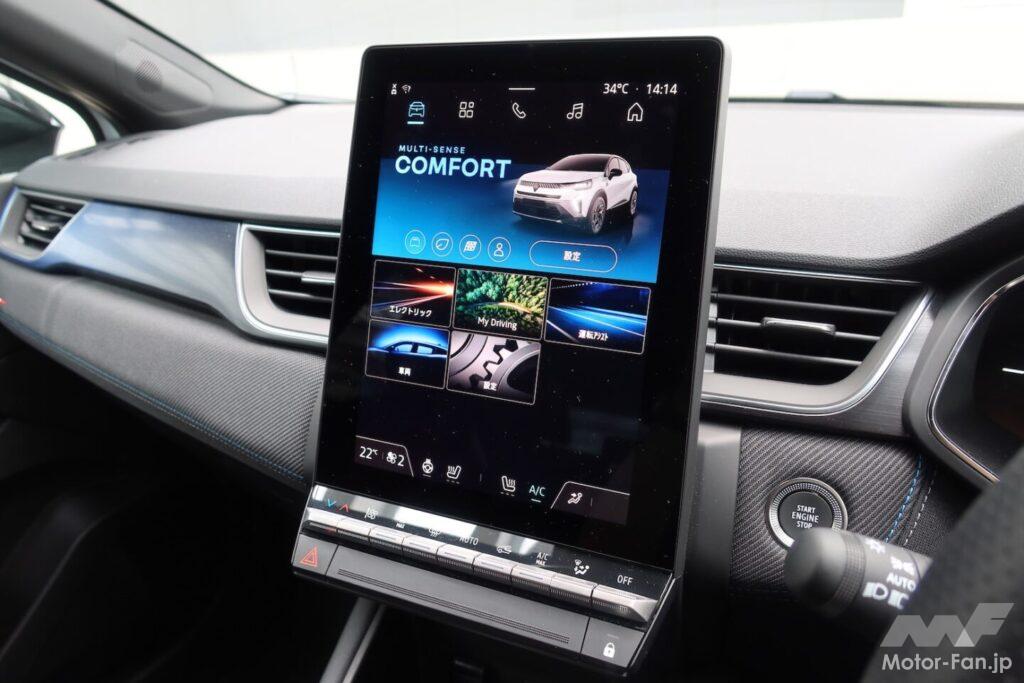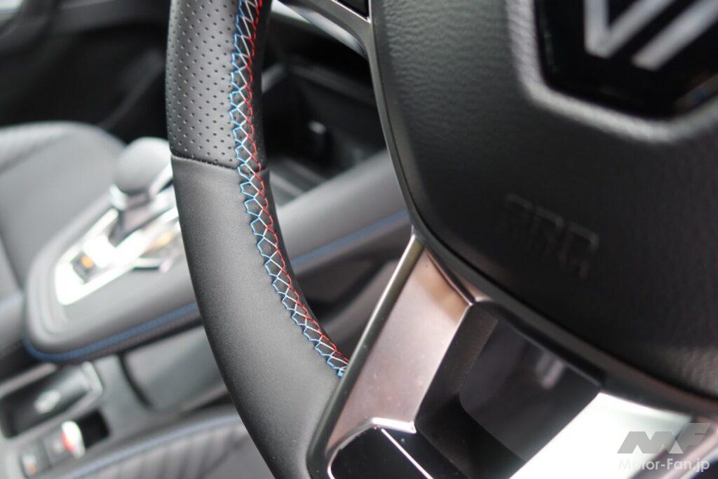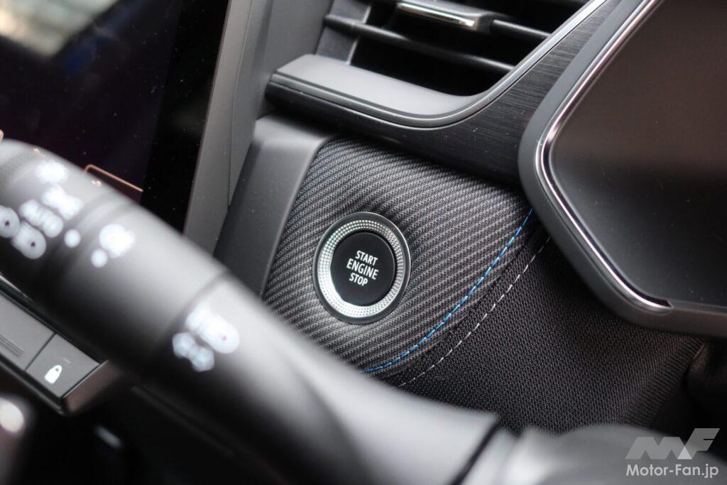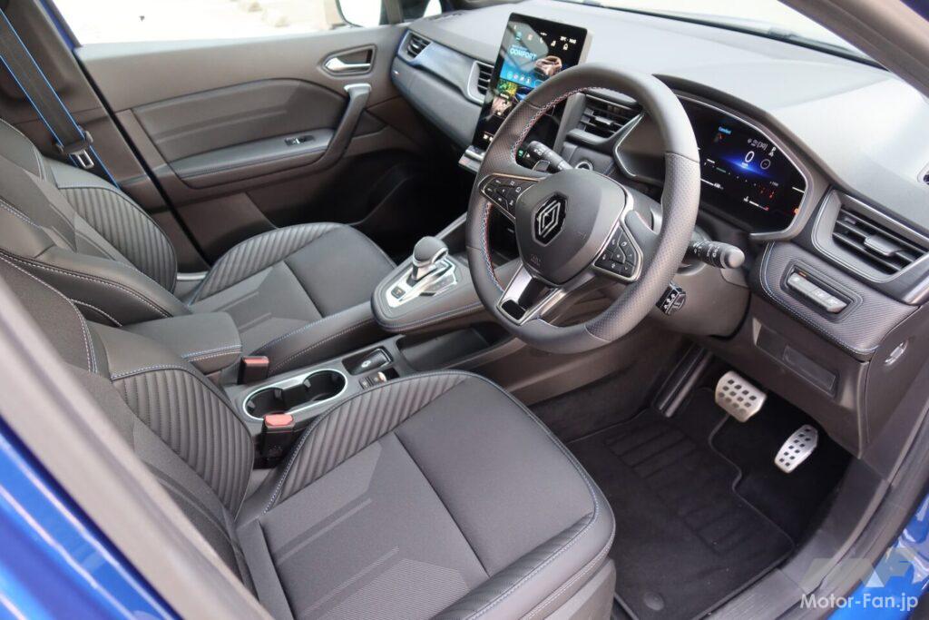 タイヤ&ホイールはキャプチャー初の19インチ(タイヤサイズは225/45R19)となり、フロントフェンダーに専用バッジがつき(意外と目立つ)、インテリアでは運転席が電動シートになってアルミペダルが付き、インパネがブルーの加飾になり、ダッシュボードの助手席側にフランス国旗の縫い込みがさりげなく施され、シートベルトにブルーの差し色が入る。ステアリングホイールの縫い目は赤白青のトリコロールだ。