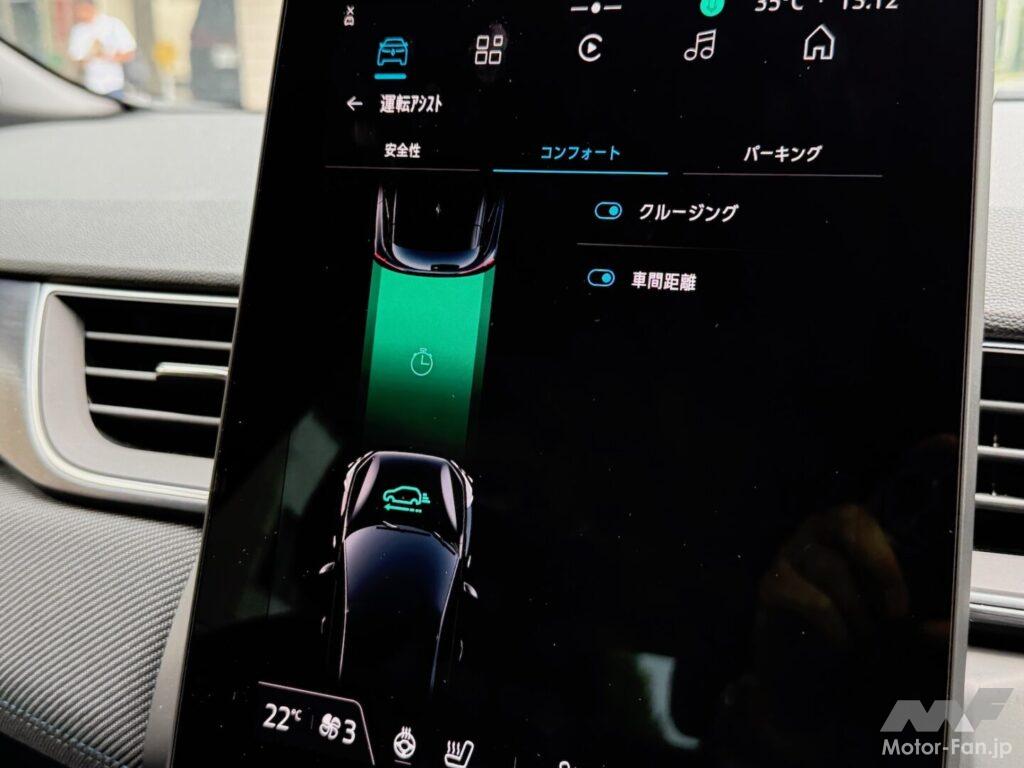 センターのタッチディスプレイで設定を切り換えられるが、「クルージング」をオンにすると、アクセルペダルをオフにしたときにエンジンは停止し、クラッチを切って、コースティングに移行する。エンジンブレーキはかからず、ひたすら空走する。燃費のためだ。市街地を走行しているシチュエーションでも、高速道路を巡行している状況でもアクセルペダルを戻すとコースティングに移行する。