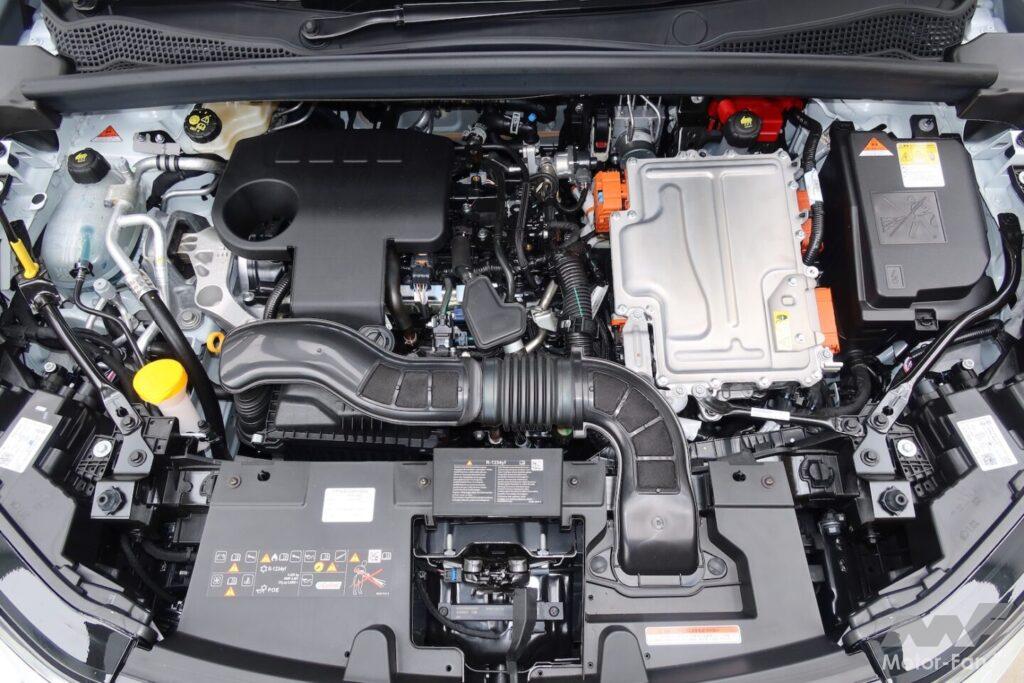 MHEVは車重がフルハイブリッドE-TECHより90kg軽い(1330kg)こともあって、乗り換えた直後に「あ、軽い」と実感するくらい動きが軽快だ。オルタネーターがBSGに置き換わっただけではなく、専用のバッテリーを搭載するだけあり、走りの面では純エンジン車との変化が大きい。