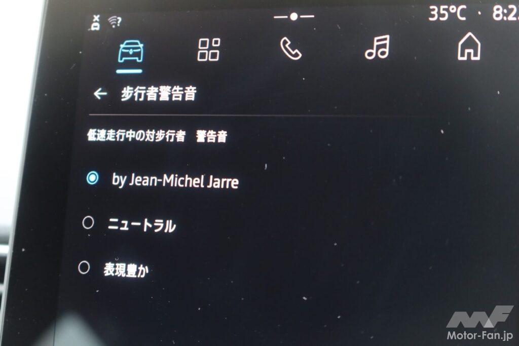 ちなみに、今回のマイナーチェンジで車両接近通報装置の通報音が変更され、フランス人アーティストで作曲家、そして作家のジャン=ミシェル・ジャール氏が開発に携わったバージョンが追加されている。誰?と思うかもしれないが(筆者もそのひとり)、フランス人なら誰でも知っているアーティストだそうだ。なかなか幻想的なサウンドなのだが、幻想的な点では「表現豊か」や「ノーマル」のサウンドも共通している。そもそも通報音が切り換えられるって、なかなかフレンチタッチではないか。