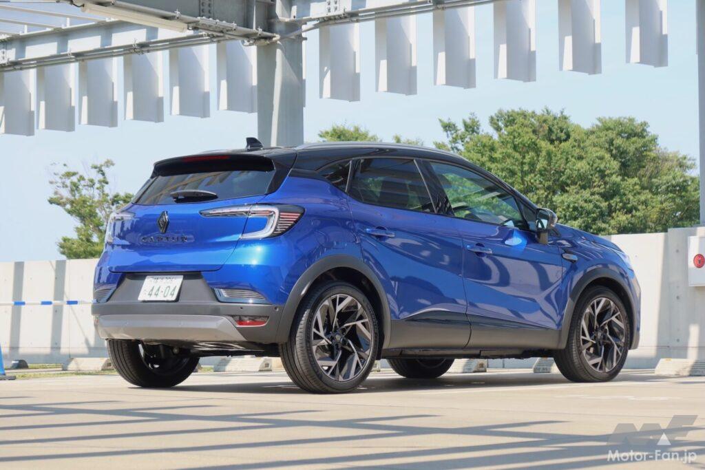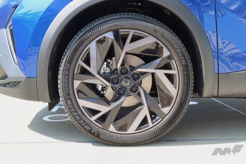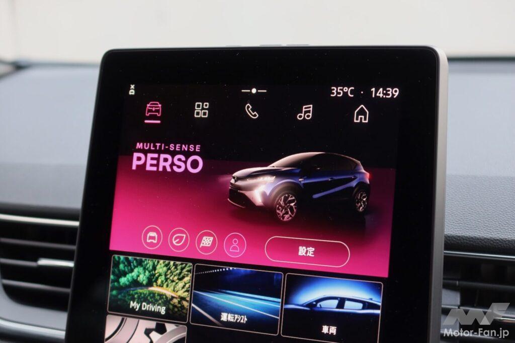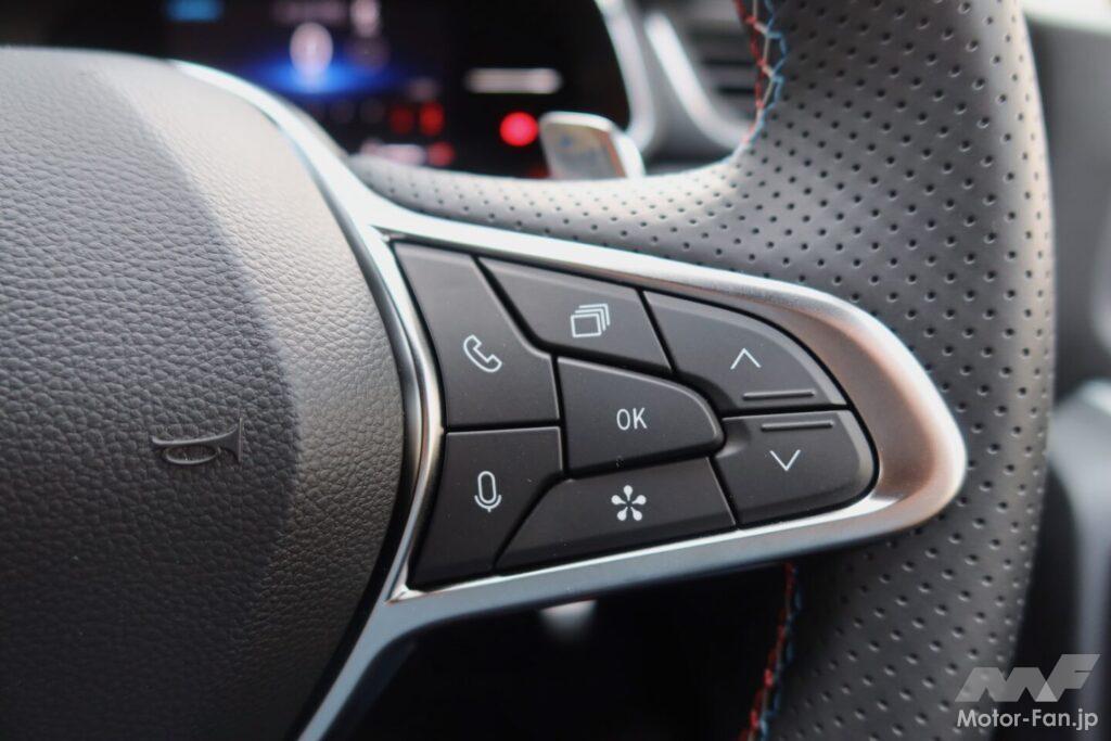 タイヤ&ホイールはキャプチャー初の19インチ(タイヤサイズは225/45R19)となり、フロントフェンダーに専用バッジがつき(意外と目立つ)、インテリアでは運転席が電動シートになってアルミペダルが付き、インパネがブルーの加飾になり、ダッシュボードの助手席側にフランス国旗の縫い込みがさりげなく施され、シートベルトにブルーの差し色が入る。ステアリングホイールの縫い目は赤白青のトリコロールだ。