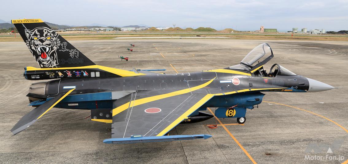 自衛隊新戦力図鑑漆黒のボディ塗装に黄色のラインを効果的に施したF-2戦闘機。これは築城基地(福岡県)に置かれた航空自衛隊第8飛行隊の機体だ。2020年、第8飛行隊は部隊創設60周年を迎えたことから、飛行隊が保有運用する1機のF-2に記念塗装を施した。通常塗装の青色を基調としたF-2と違い、さらに精悍で鮮烈なイメージのカラーリングとなっている。