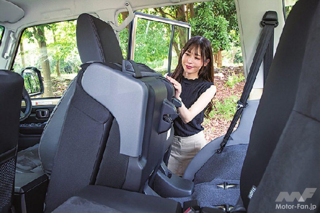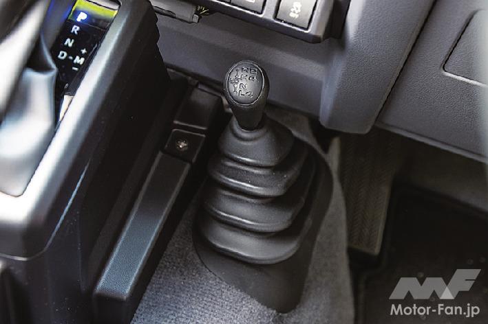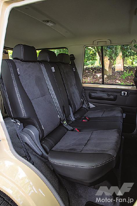 悪路走破力が高い半面、舗装路の運転感覚は個性的だ。ステアリングの反応は鈍く、車線変更をあえて素早く行なうと、ボディが大きく揺り返す。乗り心地も粗く感じる。最小回転半径は6.3mと大回りだ。後席は狭く、身長170㎝の大人4名が乗車したとき、後席に座る乗員の膝先空間は握りコブシの半分程度だ。