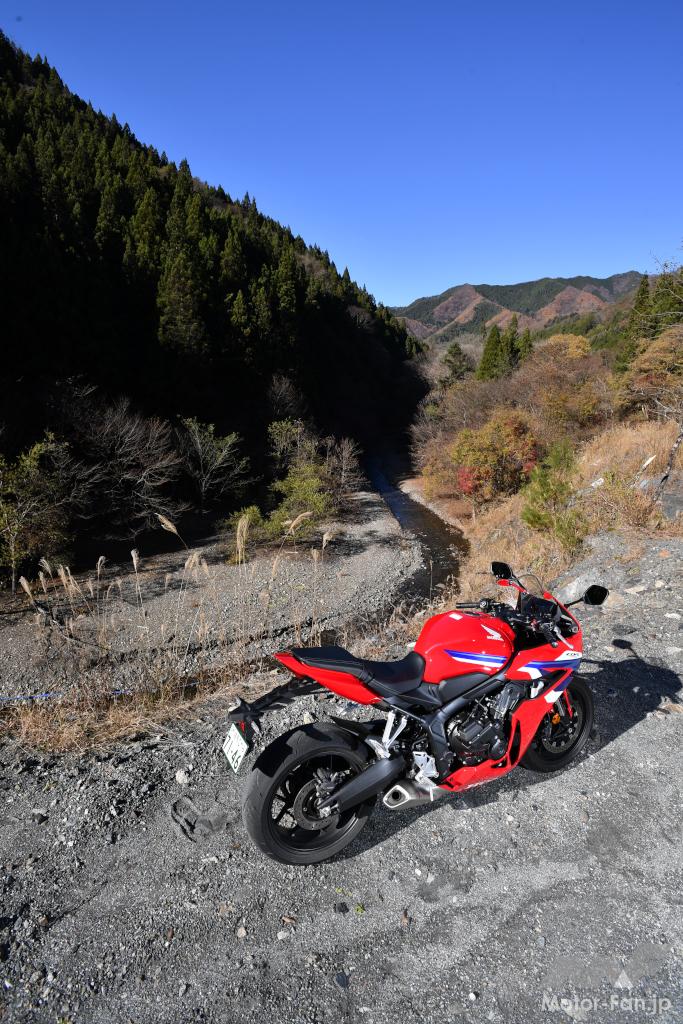 一方でKが設定したまあまあ過酷なルートを思い出すと、もし車両がサーキット指向が強くてスパルタンな特性のCBR600RRだったら、この日のツーリングは相当に厳しく、帰路では身も心も疲労困憊になっていたに違いない。いずれにしてもCBR650Rの話をするときに、CBRR600RRを比較対象として持ち出すのは野暮な話で、2台のミドルCBRはやっぱり別物なのである。