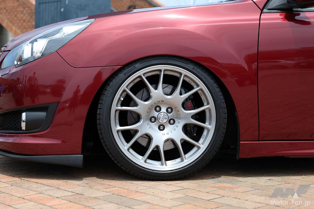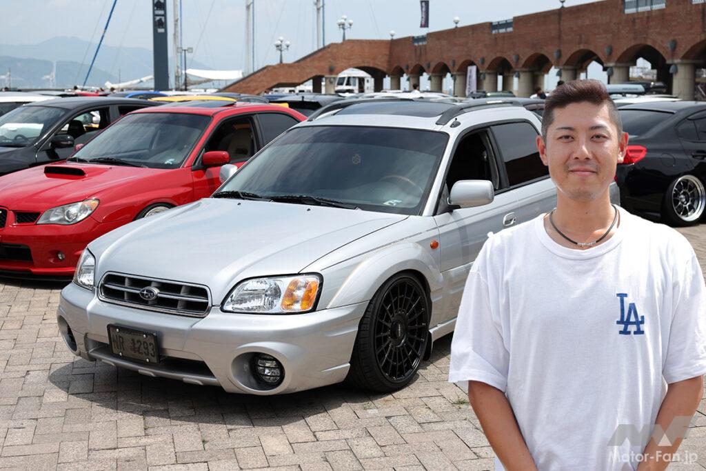 今回のミーティングの運営側としても活躍していたなべさん。SUBARUDOに参加した当初はBEレガシィ(ブリッツェン!)に乗っていて、その後家庭の事情でマツダ車に乗り換えたが、「MT、水平対向いいな」とSUBARUへ回帰。「そのどれも(SUBARUもマツダも)が赤だった」とお友達が教えてくれました。愛車は、車高、ホイールで存在感アップ。シンプルな欧州車的なカスタムを進めている。