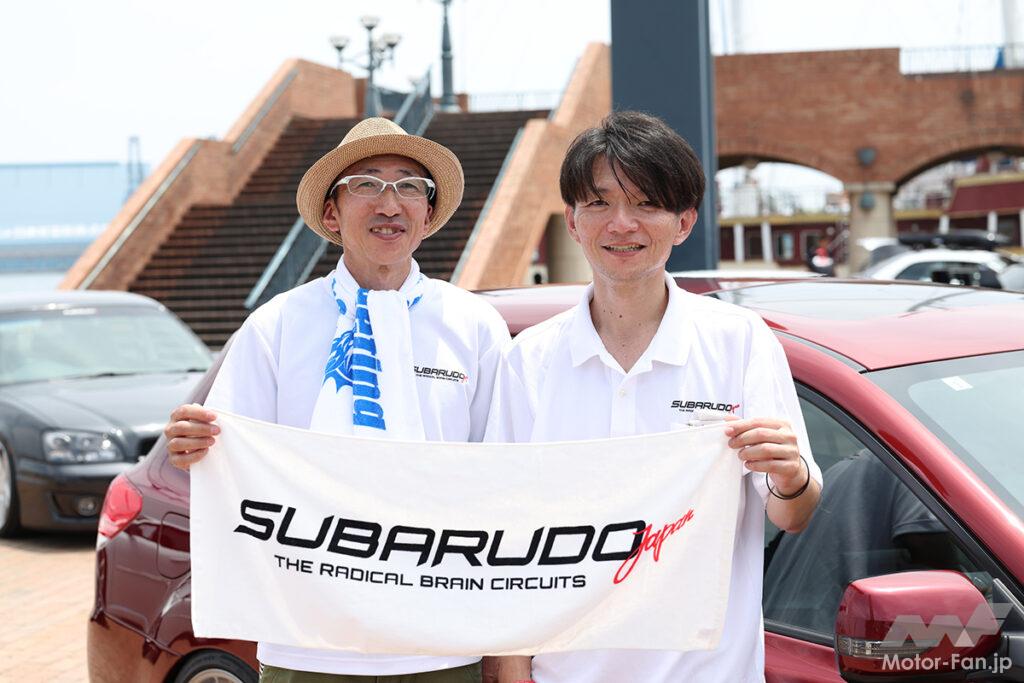 今回のミーティングの運営側としても活躍していたなべさん。SUBARUDOに参加した当初はBEレガシィ(ブリッツェン!)に乗っていて、その後家庭の事情でマツダ車に乗り換えたが、「MT、水平対向いいな」とSUBARUへ回帰。「そのどれも(SUBARUもマツダも)が赤だった」とお友達が教えてくれました。愛車は、車高、ホイールで存在感アップ。シンプルな欧州車的なカスタムを進めている。