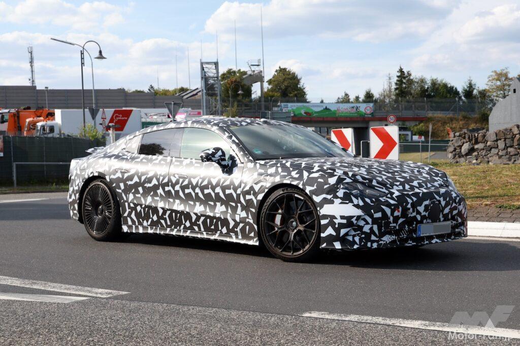 メルセデスAMGが独自に開発を進める、「GT 4ドア」の後継EV最新プロトタイプをカメラが捉えた。