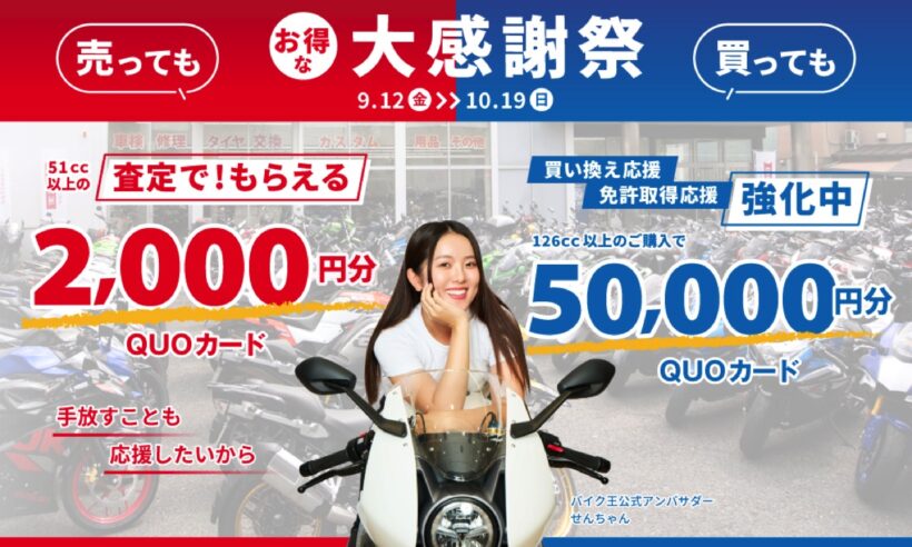 バイク王が「売っても買ってもお得な大感謝祭」開催 YouTuberせんちゃんが地上波CMに初登場【写真・7枚目】