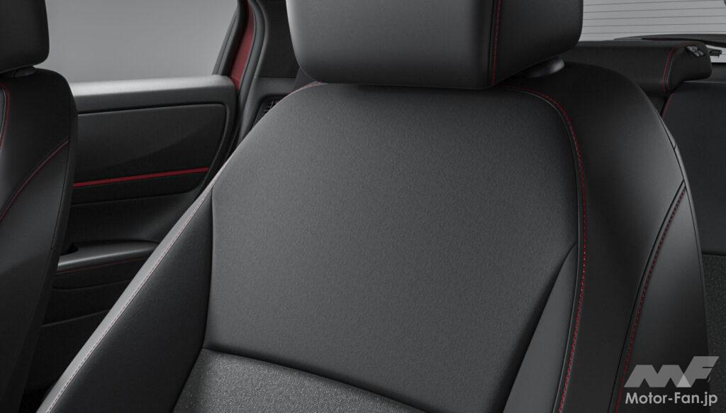 エクステリアは専用フロントグリルやRSエンブレム、バンパーモールディングを採用することでロー&ワイドなフォルムを強調し、ひと目でスポーティさが伝わる存在感を実現。インテリアには黒を基調とした空間に赤のアクセントを散りばめ、さらにラックス スェード(*1)を使用した専用コンビシートを備えることで、上質かつ精悍な印象を与えている。