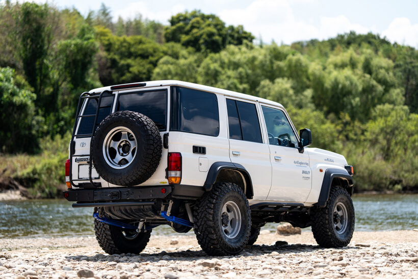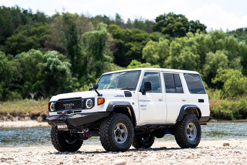 外装 知っておきたい! クロカン四駆の生き字引『4×4エンジニアリングサービス』が提唱する現行ランドクルーザーの王道スタイル【写真・28枚目】 4×4エンジニアリングサービス 住本さん 「70系はリーフ車なので、リフトアップには構造変更が必要に。構造変更なしならショックとMCB、変えるならコイルもリーフも一式交換が推奨です」。 4×4ENGNEERING SERVICE/ランドクルーザー250 4×4ENGNEERING SERVICE/ランドクルーザー250 センターキャップ■価格:1万2100円/チタニウムラグナット ■価格:9万2400円(20個)ステンレス製オーナメントが高級感を演出してくれるセンターキャップ。ツヤ消し黒で引き締まり感も大。ナットはタフネスかつ美麗。 オーバーフェンダー■価格:16万5000円(1台分)※GXは適合外 250専用設計で、60のイメージを含めながらいかにも純正で設定されていそうなデザインに仕上げたのが特徴。耐候性と耐衝撃性に優れるAES樹脂製。前後35㎜ワイド。 リアラダー■価格:7万3700円※GXは適合外 機能性とスタイルを両立したハーフ形状のリアラダー。乗り降りしやすい最適なパイプ径で足もかけやすい。 ボンネットダンパー ■価格:6万500円 重たいボンネットをダンパーのガス圧で軽く開けられるように。ボンネットを支える支柱が不要になるため、メンテナンス性も向上。 MCB(モーションコントロールビーム)■価格:19万2500円(1台分) 安定性と快適性を高め、本来の性能を引き出して走りの楽しさを感じられるようになるMCB。走破性だけでなく車酔い軽減にも効果的。 2インチアップが可能なカントリーサスペンションのコイルスプリングは現在開発が進行中で、デモカーには試作品が装着されている。調整式のラテラルロッドも付属される予定だから安心。 4×4ENGNEERING SERVICE/ランドクルーザー70 4×4ENGNEERING SERVICE/ランドクルーザー70 BRADLEY V 徹底的に機能性を重視、高い品質と耐久性を獲得した低圧鋳造1ピース。1983年に誕生したブラッドレー01の系譜に連なる名作だ。デモカーには定番の16インチ。ローレット加工済み。 アドオンフェンダー■価格:7万4800円(1台分) 純正フェンダーに継ぎ足すカタチでワイド感を演出できるフェンダー。フロントが15㎜、リア20㎜ワイドとなる。 マッドガードレスエンド■価格:3万3000円(1台分) 純正マッドガードをレスにした跡をカバーするためのパーツ。見た目がスマートになるだけでなく車高も高く見え、悪路走行にも有利。 アドブルーリッドクローズキット■価格:1万7600円 左フェンダーの純正アドブルーリッドをエンジンルーム内に移設、給油口をクローズするためのキット。フェンダーまわりがスッキリ。 ボンネットダンパー■価格:4万9500円ガス圧式のボンネットダンパー。全開までに途中でいったん止まるため、車高が高くても手が届きやすい。全開時もルーフより低い。 リアラダー■価格:5万2800円〜5万7200円スチール製とSUS304ステンレス製の2種類を用意。差し込み+溶接設計だから耐荷重性も優秀。後方視界もさまたげにくい形状だ。 デモカーにはショックアブソーバーとフロントコイル、リアリーフなどを含んだカントリーサスペンションキットを装着。オフロード車専用の味付けが魅力だ。コーナリング時のロール抑制や乗り心地改善に有効なMCBも必見。 3Dフロアマット■価格:1万4080円〜1万9580円 ゴムのような性質を持つTPO素材で、軽量かつ耐候性が優秀。3D構造だから細かな砂などの散乱も防止。水洗いも可。 BRADLEY FORGED匠 フォージド匠は16インチも17インチも対応可。ブラッドレーVにも同サイズは設定するがハミ出してしまうため要フェンダー。 この画像の記事を読む