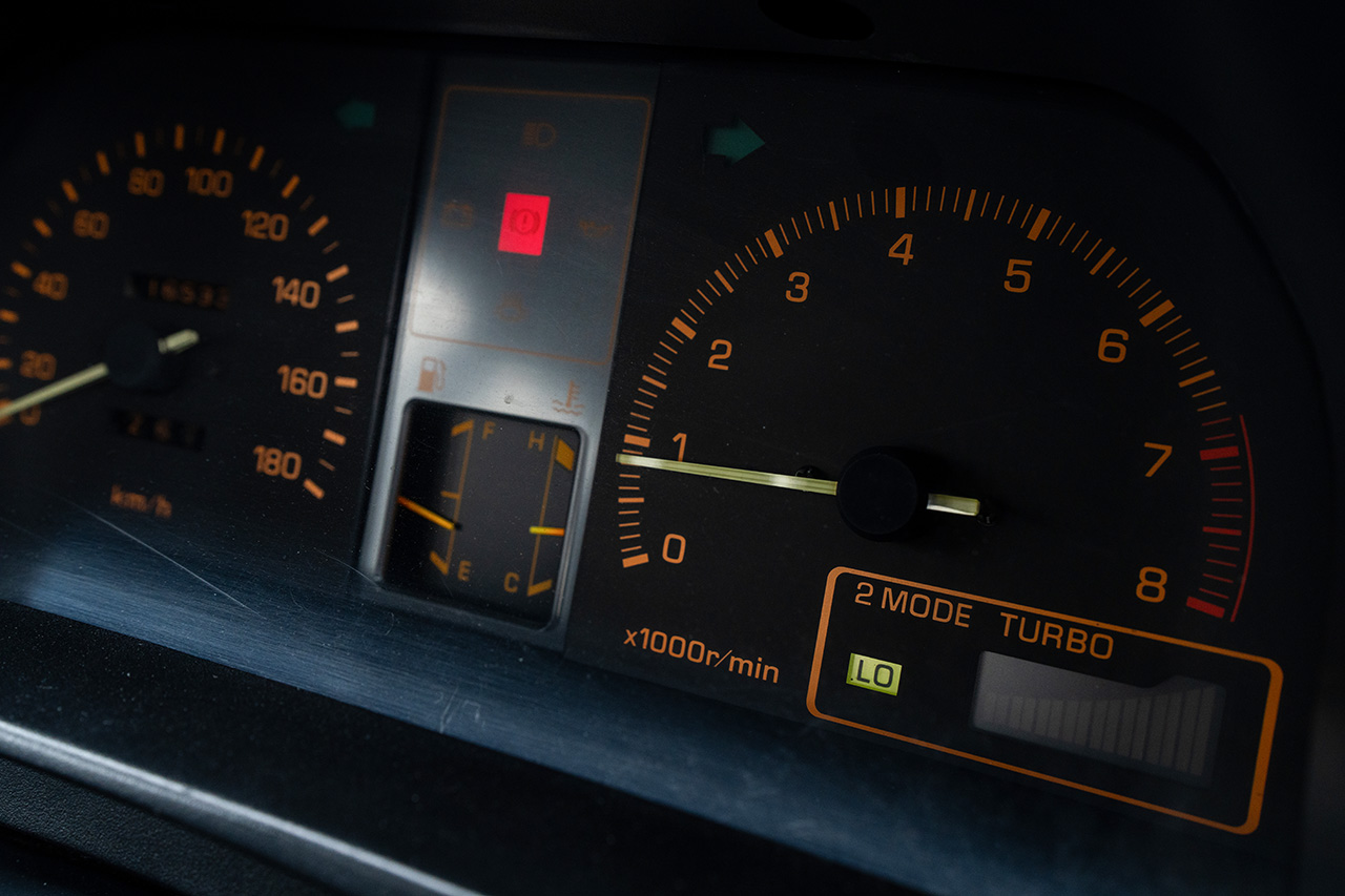 EP71から投入されたスターレットらしいギミックが、純正から備わるブースト切り替えスイッチ。ブースト圧の制御はハルテックの高性能ソレノイドへ置き換えているが、純正スイッチを継続活用してロー0.6キロ、ハイ1キロでセットアップした。