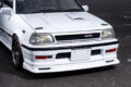 R31用リップスポイラーをベースデザインが崩れないようにダクト外側で幅ツメ加工して装着。インタークーラーに合わせた吸気口に拡大したFRPボンネット、冷却効率に優れる前期グリルなどで80年代の走り屋的な精悍フェイスとした。