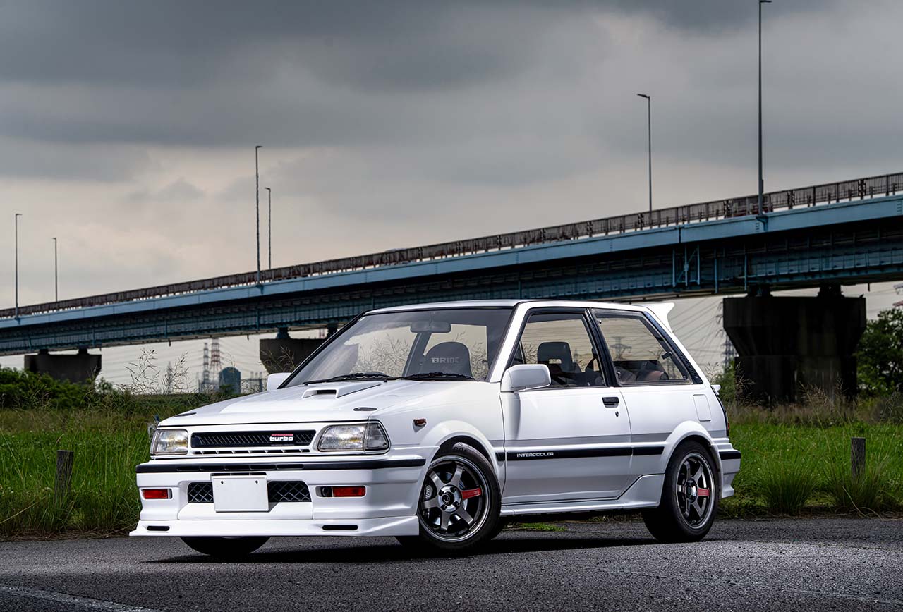 700kg台の軽量ボディに1.3Lのターボエンジンを搭載した、元祖ホットハッチとも呼ぶべき存在がEP71スターレットだ。“韋駄天”“かっとび”といったキャッチコピーに相応しい走りが楽しめたFFターボはモータースポーツでも活躍し、まさに80年代を代表する軽量マシンの1台となっている。