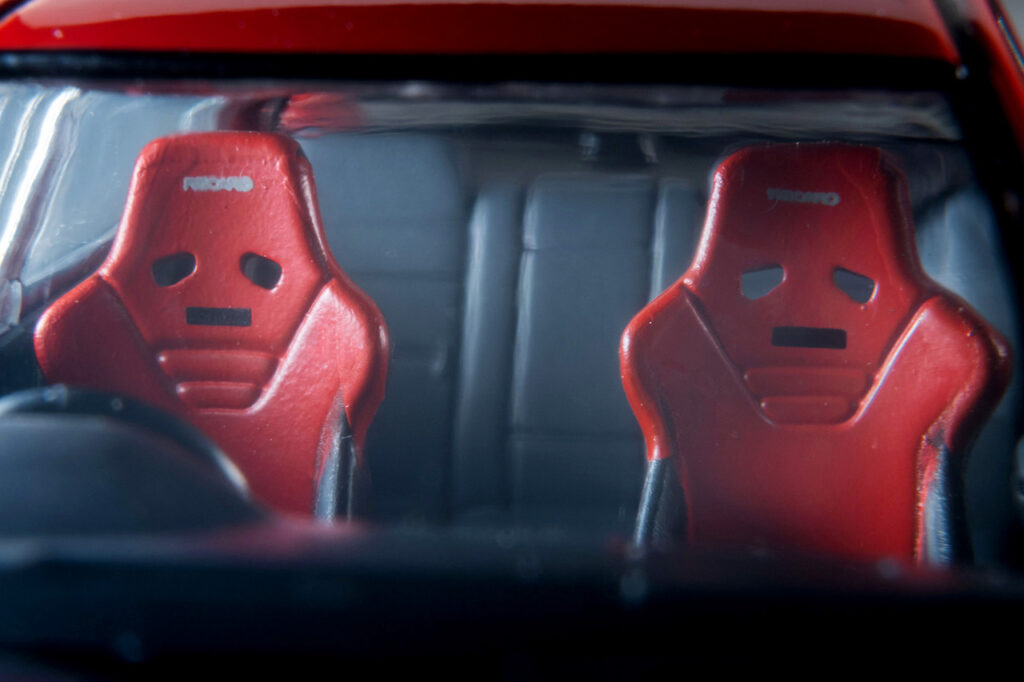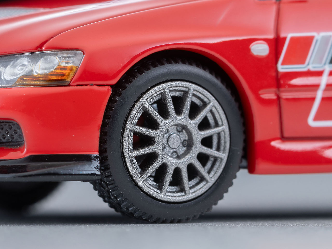 今回は三菱のモータースポーツ・ブランドとして有名な『ラリーアート』パーツを装着した仕様を製品化。ノーマル車とは異なる形状のリップスポイラーや小型のドアミラー、細いラインを組み合わせたカラーリングが再現された。