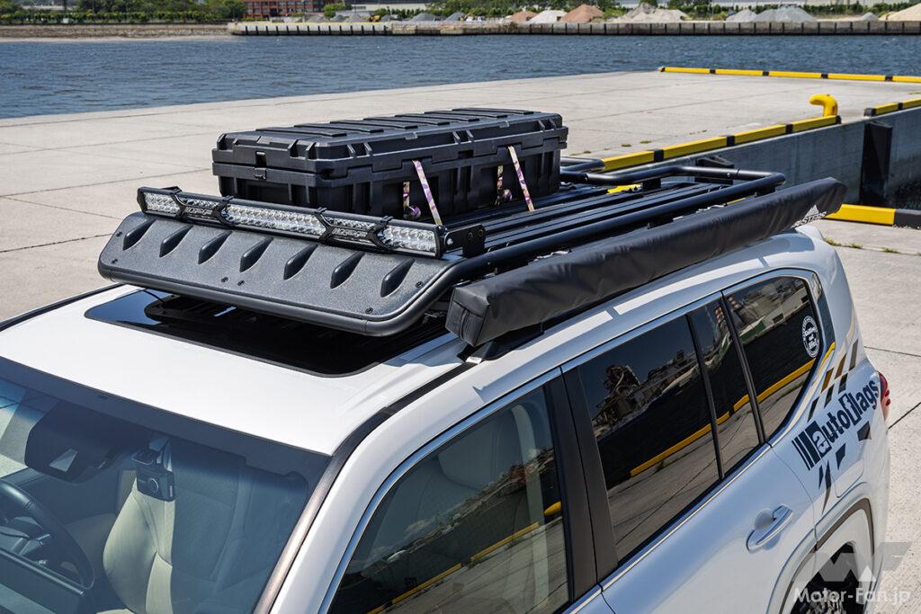 今回紹介するのは、製品化を踏まえた最終プロトモデル。まず目を引くのが、250のフロントに装着されたバンパーガード。こちらも試作初期から形状変更が行われ、丸パイプと角パイプを組み合わせたスポーティなデザインに決定。地上高への影響を純正レベルにとどめたサイドステップは、底部にLEDマーカーが追加された。また、純正ガラスハッチの開閉機構に対応したリアラダーについては、試作品の形状がほぼそのまま活かされている。これらに加え、低重心とデザイン性にも定評を持つ300/250専用BUSTERSルーフラックも絶賛発売中。街角からアウトドアシーンまで、オートフラッグスの各種アイテムで、自分流のスタイルを演出してみては?