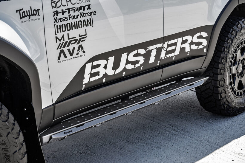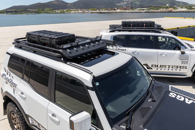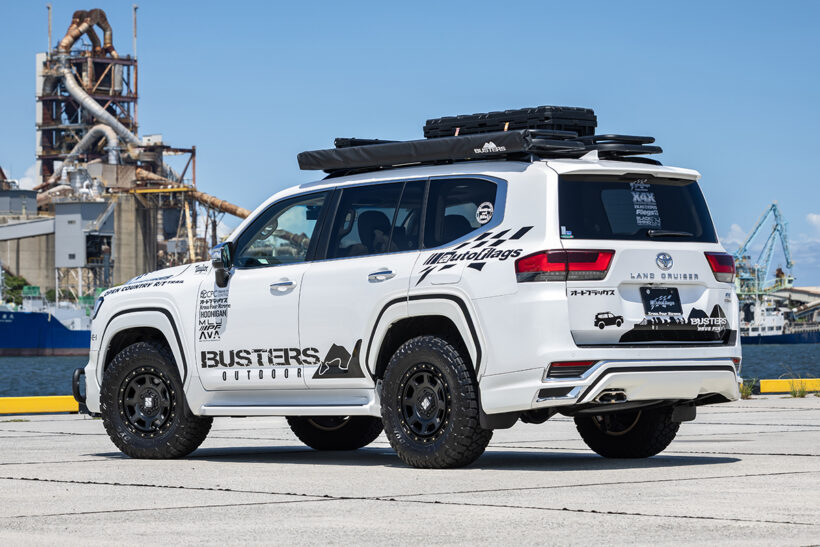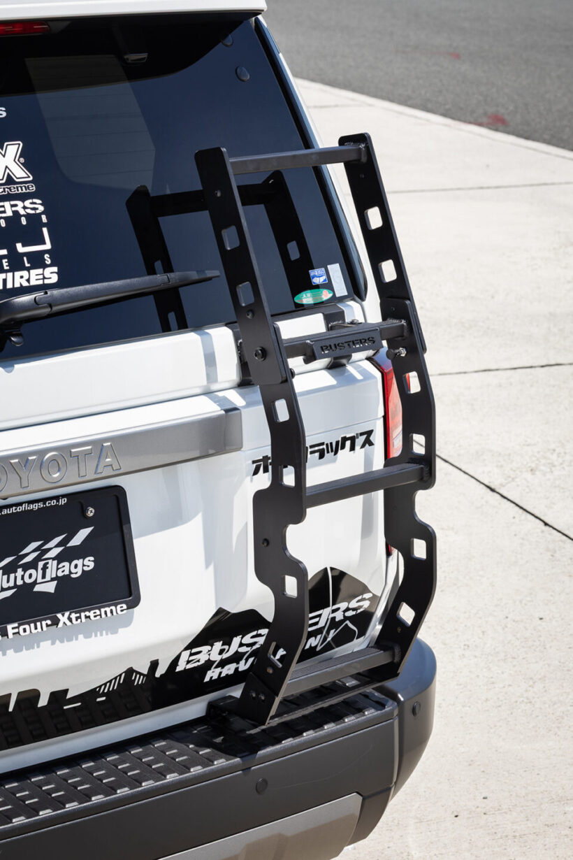 エアロパーツ 純正ガラスハッチが開閉できるリアラダー、タフなバンパーガードが発売間近! オートフラッグスの『ランドクルーザー250』【写真・8枚目】 auto flags ランドクルーザー250 auto flags ランドクルーザー300 同社のデリカD:5用でも人気のステンレス製のデザインプレート付きマッドフラップ。取り付けに際しての穴あけ加工等は不要。 カーボンタイプのカバー付きマフラーカッターは残念ながらデモカー用の参考装着品で、開発は未定。 ブラックライノ・BR022 BAHARI エクストリームジェイ・XJ07 こちらも同社独自の低重心設計で人気のBUSTERSルーフラック。前面にはボルテックスジェネレーター付きのフェアリングを標準装備。フェアリングを外せばスポットランプが取り付けられる頑丈なステーも備わる。BUSTERSのサイドタープを取り付け可能な専用ステーも別売りで用意されている。また、BUSTERSルーフラックに、IPF製の40インチLEDライトバー「642SD-ダブルロー」を装着できる専用キットも発売を開始。こちらも見逃せない。 ランドクルーザー300 ランドクルーザー300 この画像の記事を読む