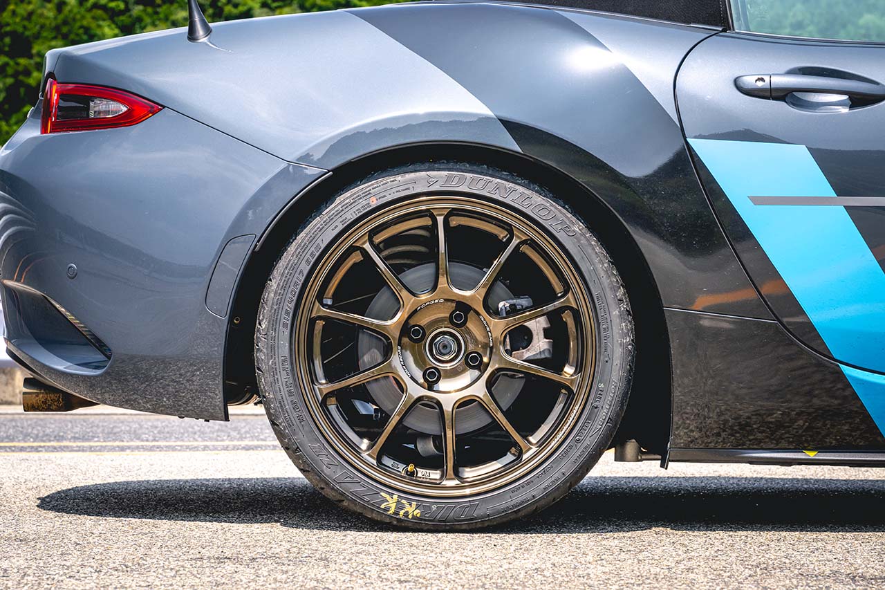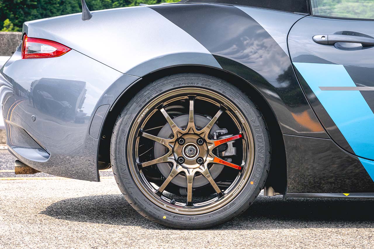 「安定感のあるTE37と、軽さが際立つZE40のちょうど中間的な性格を持つホイールだという印象でした。ハンドルやアクセル操作に対してピーキーすぎず、高速コーナーからのブレーキングでもリヤが滑ることはありませんでした。さらに、ハンドルを切り始めてからアクセルを踏める体勢になるまでの動きも早く、今回のロードスターのスペックや鈴鹿ツインのスピードレンジには非常にマッチしていると感じました。安定して好タイムを刻めるホイールだと思います」。