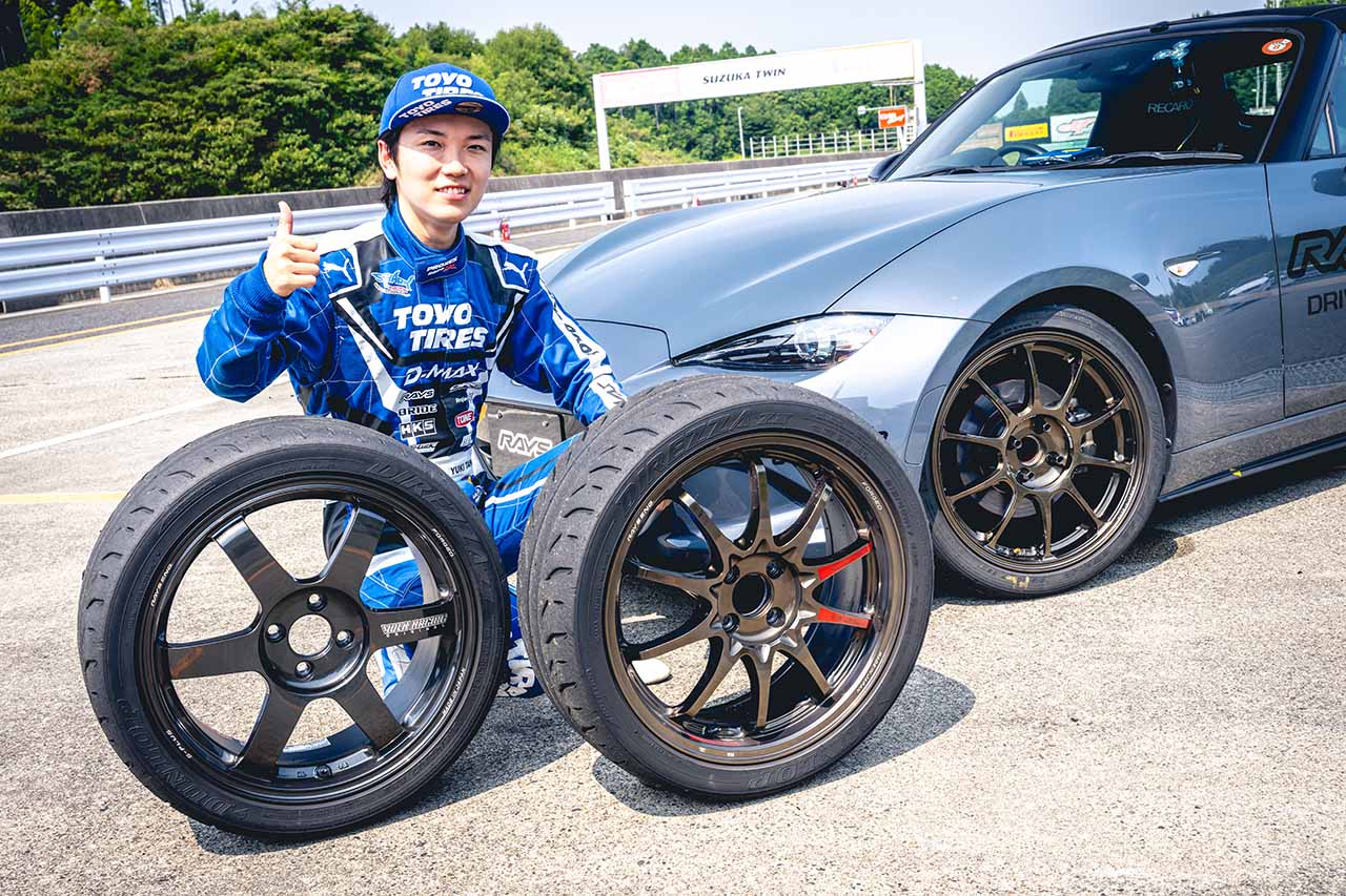 2025年4月に開催された『RAYS DRIVING EXPERIENCE』で純正ホイールと鍛造ホイールの違いを体感した田野選手。今回は鍛造ホイール同士の比較だったが、その特性の差は想像以上に大きかったと語る。