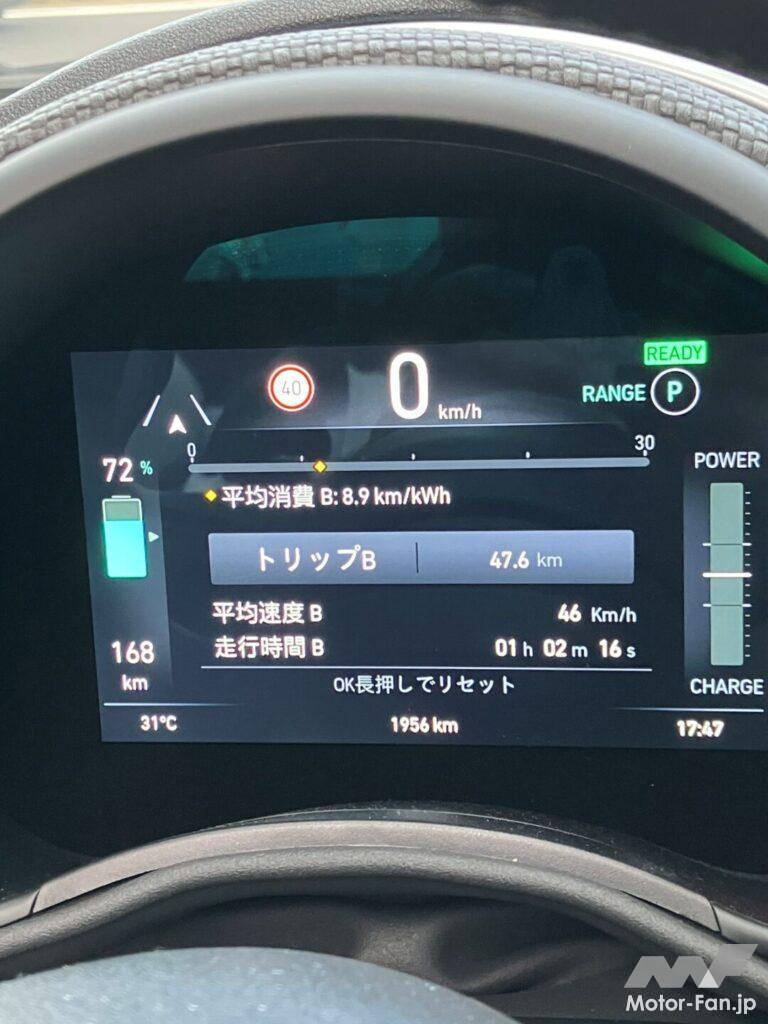 具体的には、4月頃には区間電費で11km/kWhといった数字を見ることも日常的だったが、8月になってエアコンを常時フル活用すると、短距離の街乗りでは電費が5km/kWhを切ることもあるほど。高速道路を走るようなシチュエーションでも6掛け程度まで悪化するイメージだった。