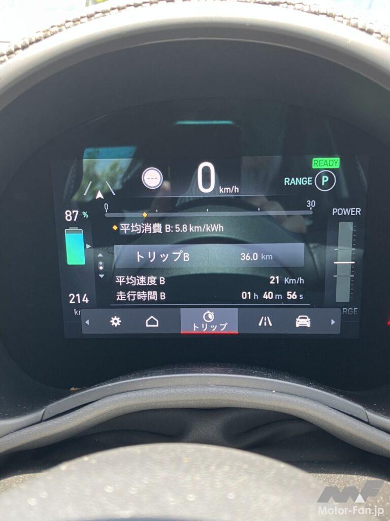 具体的には、4月頃には区間電費で11km/kWhといった数字を見ることも日常的だったが、8月になってエアコンを常時フル活用すると、短距離の街乗りでは電費が5km/kWhを切ることもあるほど。高速道路を走るようなシチュエーションでも6掛け程度まで悪化するイメージだった。