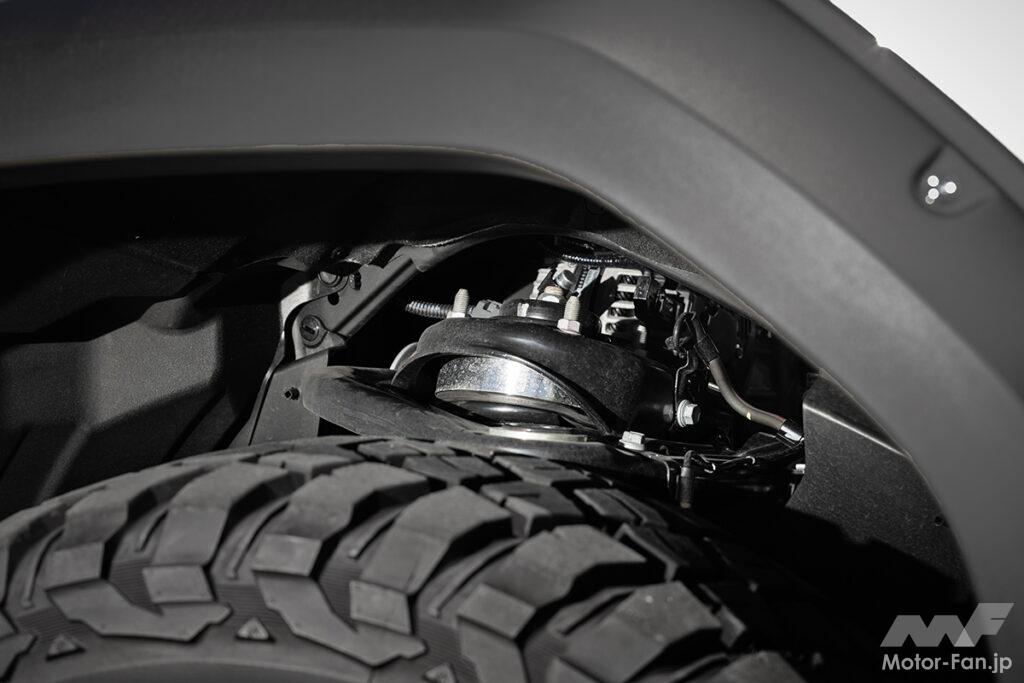 ファーストステップとして着手したのは足元のモディファイ。オーナーは元々、ランクル80乗りだったこともあり、スタイル的にはファッション路線よりリアルオフローダー的な質実剛健さがお好み。このためホイールは軽さと強度に定評のレイズ・チームデイトナD108を選択。タイヤもBFグッドリッチのMT・KM3とした他、ACCのイージーアップスペーサーで1.5インチリフトアップ。さらにダミーリベットがアクセントとなったジャオスのフェンダーガーニッシュでドッシリとした重厚感を演出。昨今、懸念されている防犯対策についてもクリフォードのセキュリティでしっかりガード。今後はマフラー交換やキャリアの取り付けなど、機能と実用性を両立させたクルマ作りが進められている予定だ。