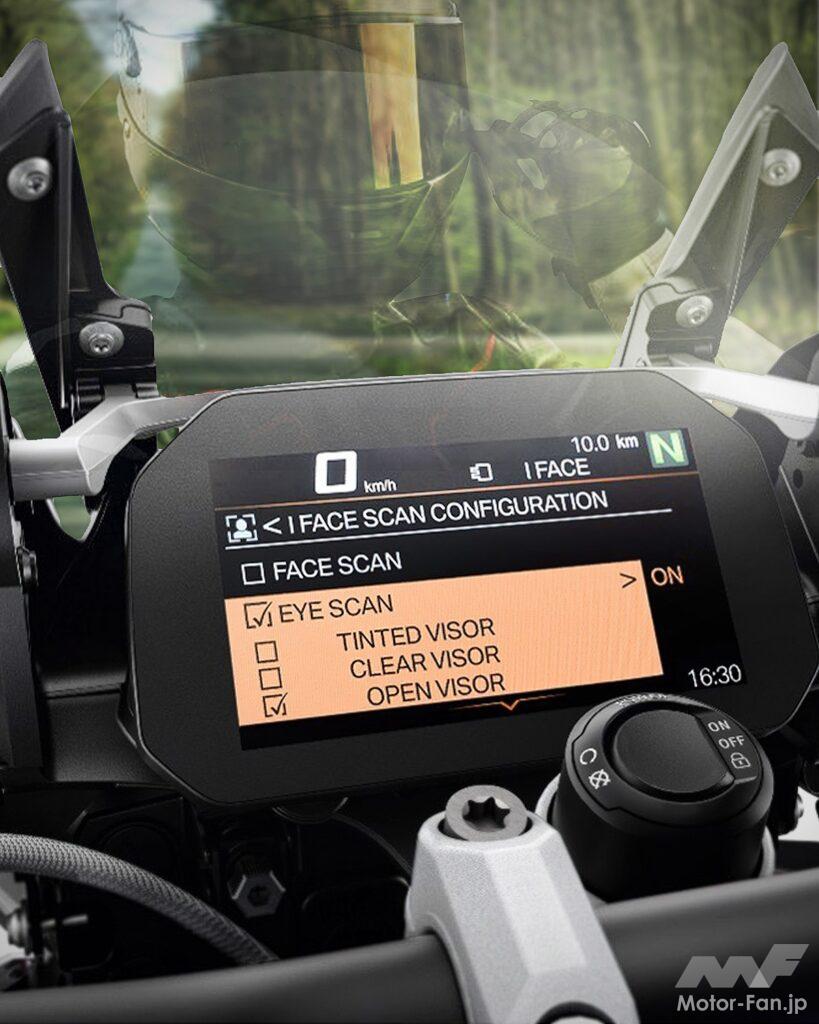 顔認識には、超近代的なBMW MotorradのTFTディスプレイに組み込まれた最新の3Dテクノロジーが使用されており、外からは見えないようになっている。これは、リバース・エンジニアリングなどで長年使用されてきた技術であるストライプ・プロジェクションによるものだ。ヘルメットを脱ぐと、顔が3次元的にスキャンされ、バイオメトリック検査が行われる。