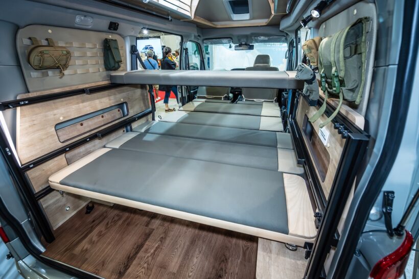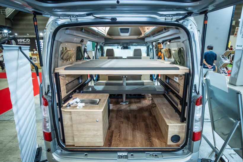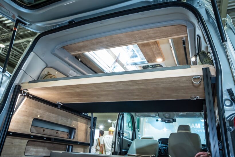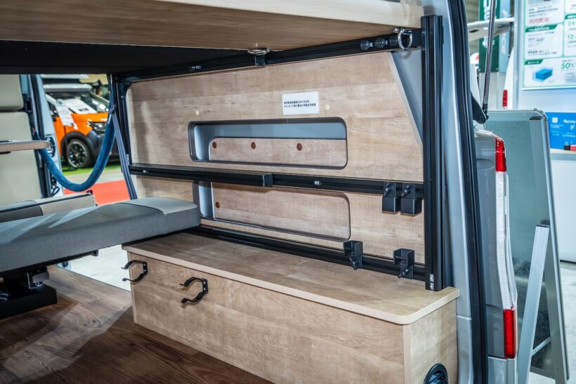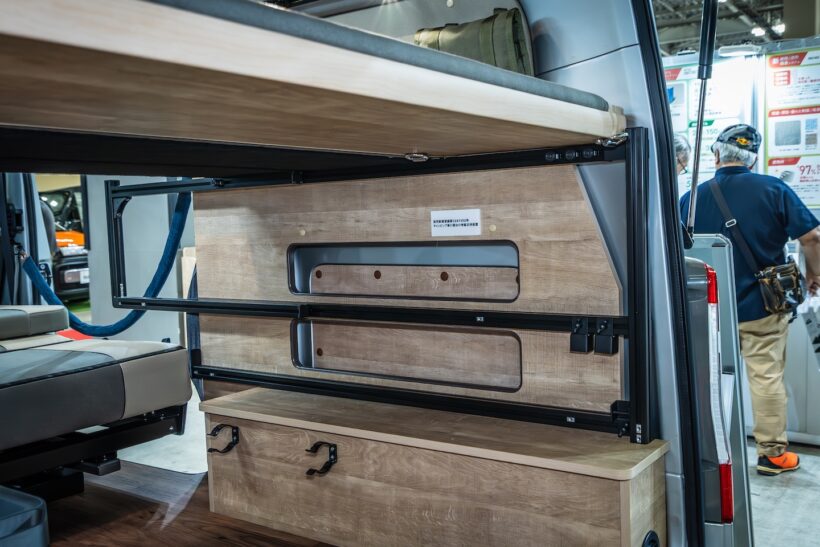 カーライフ キャンピングカーを選ぶとき、絶対に覚えておいてほしい。寝る場所とくつろぐ場所が別だと、快適度が段違いだということを【写真・19枚目】 レクヴィ・ホビクル タウンランダーCT コンパクトタイプのシンクは、取り外して車外に持ち出すこともできる。 サイドモールシステムにより、ポーチなどを固定することが可能。 2列目シートを後ろ向きにした状態。 ハイルーフ仕様の室内高は154cm。展示車は断熱・遮熱材のデモのため、天井部分がカットされていた。 ベッドレールエクステンドライダーを利用して、好みに応じて多彩なアレンジが可能となる。 上段ベッド ソファベッドとリヤベッドマットを展開すれば、大人も寝られるスペースに。 これがベッドレールエクステンドスライダー。 この画像の記事を読む