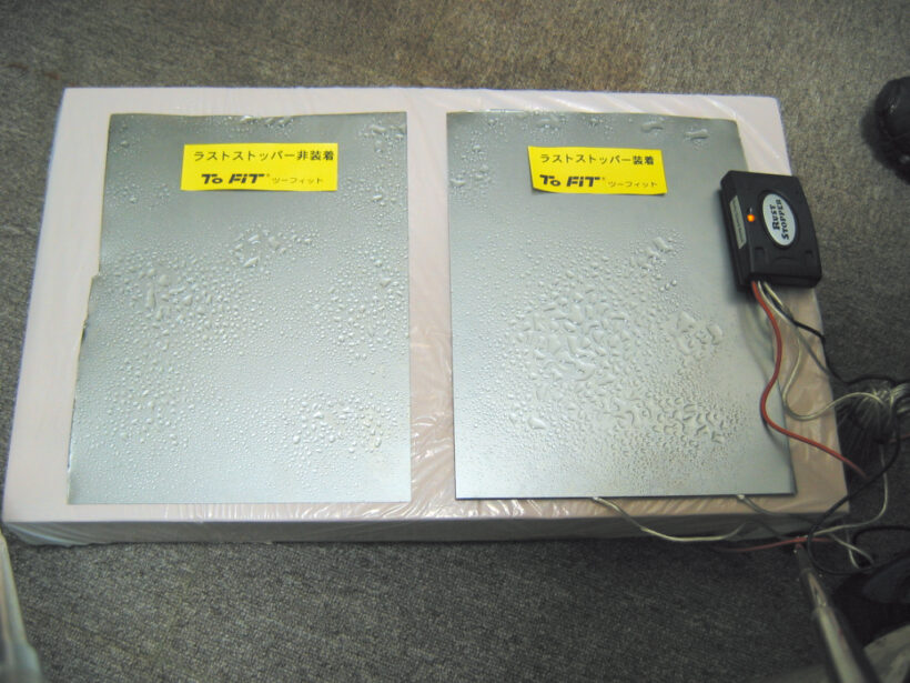 DIY・メンテナンス 電子のチカラで錆対策! 『ランドクルーザー』にこそ導入したい、ツーフィット・ラストストッパーの実力とは?【写真・1枚目】 To-Fit ラストストッパー■価格:2万7500円(レギュラータイプ)、 3万3000円(ヘビーデューティータイプ) ■セット内容:本体ユニット、本体固定テープ、配線用タイラップ、 固定部クリーニングクロス 防水仕様の本体ユニットをはじめ、装着に必要な固定用マジックテープやタイラップ、クリーニングクロスが付属。海岸付近や降雪地域はもちろんだが、市街地であってもボディの大きなランクルはシルバーの配線が2本のヘビーデューティータイプがオススメだ。 実験開始 48時間経過 塗装が剥げたり細かなキズによって金属面が露出した箇所はサビが発生しやすい。普段目につかないボディ下まわりなどは特に気をつけたい。ラストストッパーは、サビが広がるのを防ぐ効果もあり。 この画像の記事を読む