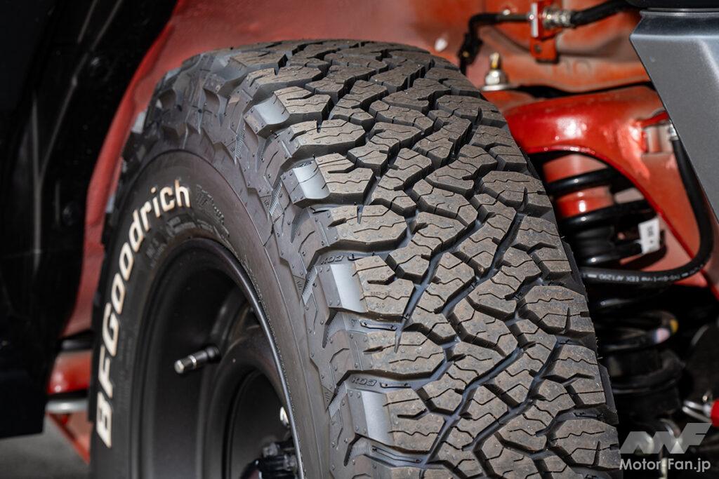 普通にクルマに乗っていれば、タイヤは減ったら交換というのが定義だが、ジムニーなどの4WD車両の場合、ボディ側面に対してタイヤ面積の割合が大きく、タイヤも立派なドレスアップアイテムとなる。さらに、使用用途に対して、特化した性能が欲しい場合、A/T、M/Tなど選択肢が複数存在する。性能面を重視するか? ルックスを重視するか? さらに、国産タイヤ、海外製タイヤと、選択肢がとても多い。