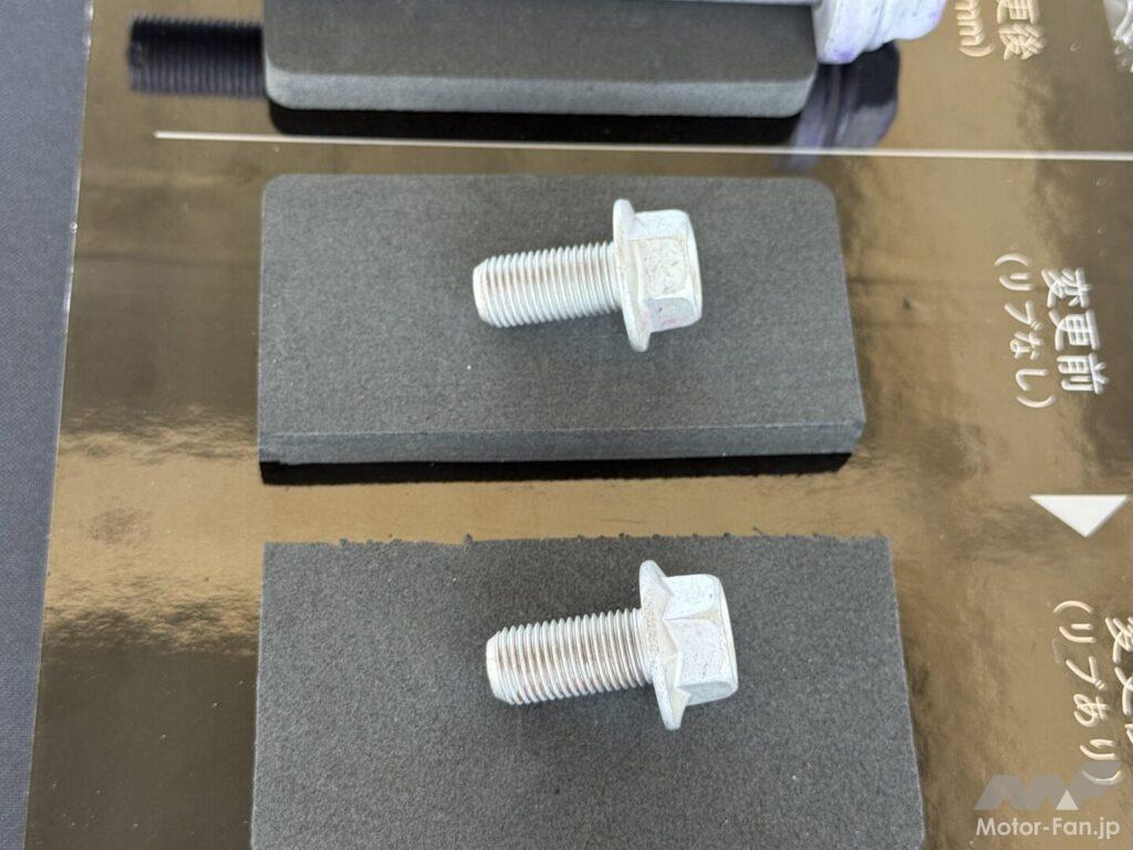 フロントロワーアームとナックルの締結部はボルトフランジにリブ形状を追加。リヤショックアブソーバー(ダンパー)のアッパーサポートとボディの締結部はフランジの厚みを増やした。また、リヤサスペンションメンバーとボディ締結部のボルトは頭部サイズを拡幅している。これらは2024年8月に発表され2025年4月に国内販売が始まったGRカローラに適用された技術と同じである。