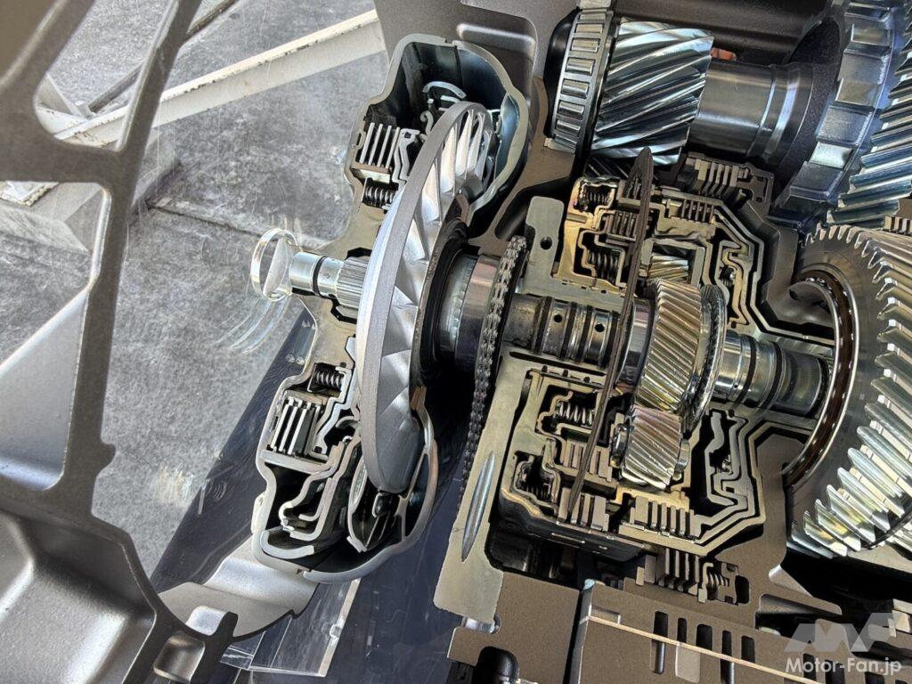 「スポーツ走行時のドライバーの意思に寄り添った変速を実現」することが、開発のテーマである。改善点のひとつは、アクセル全開加速におけるシフトアップタイミングの最適化で、走行環境によって全開加速時のシフトアップタイミングを変更している。例えば、登坂路で平坦路と同じように変速させると、シフトアップした際の回転の落ちが大きく、その後の加速が鈍くなってしまう。そこで、登坂路ではシフトアップのタイミングをあえて遅らせることで、回転が落ちた先を平坦路と同様にし、伸び感のある加速を提供できるようにした。こうした小さな改良が30項目ある。