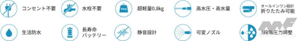 オートバイ用品メーカー「サイン・ハウス」が、“SPICERR”ブランドのポケッタブル高圧洗浄機「SWU-201」にマットホワイトカラーを追加、9月26日から発売する。価格は1万2980円(税込)。この洗浄機は折り畳み時約800g、折りたたみ後のサイズはW176×H104×D68mmと軽量・小型で、3段階の水圧切替と5種類のノズルを備える。電源・水源が無くても使え、ペットボトルでも給水可能な点が特徴。車・バイクの洗車だけでなく、窓や網戸、シンク周りなどの日常の汚れ落としにも対応する仕様。使用時間は強で約14分、弱なら約30分。販売はAmazon、ヨドバシカメラ、2りんかんなどで行われる。